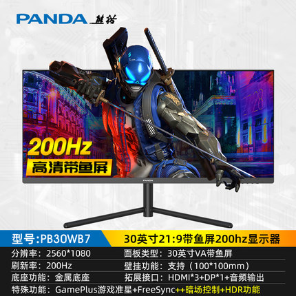 PANDA/熊猫30英寸200hz带鱼屏显示器宽屏股票分屏PB30WB7电竞游戏21:9屏幕29台式电脑液晶144hz显示屏曲面