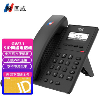 商品名称:国威 SIP电话机座机 IP话机固定电话 家用办公 百兆VOIP 双网口前台客服呼叫中心 GW31【无线WIFI+电源供电】