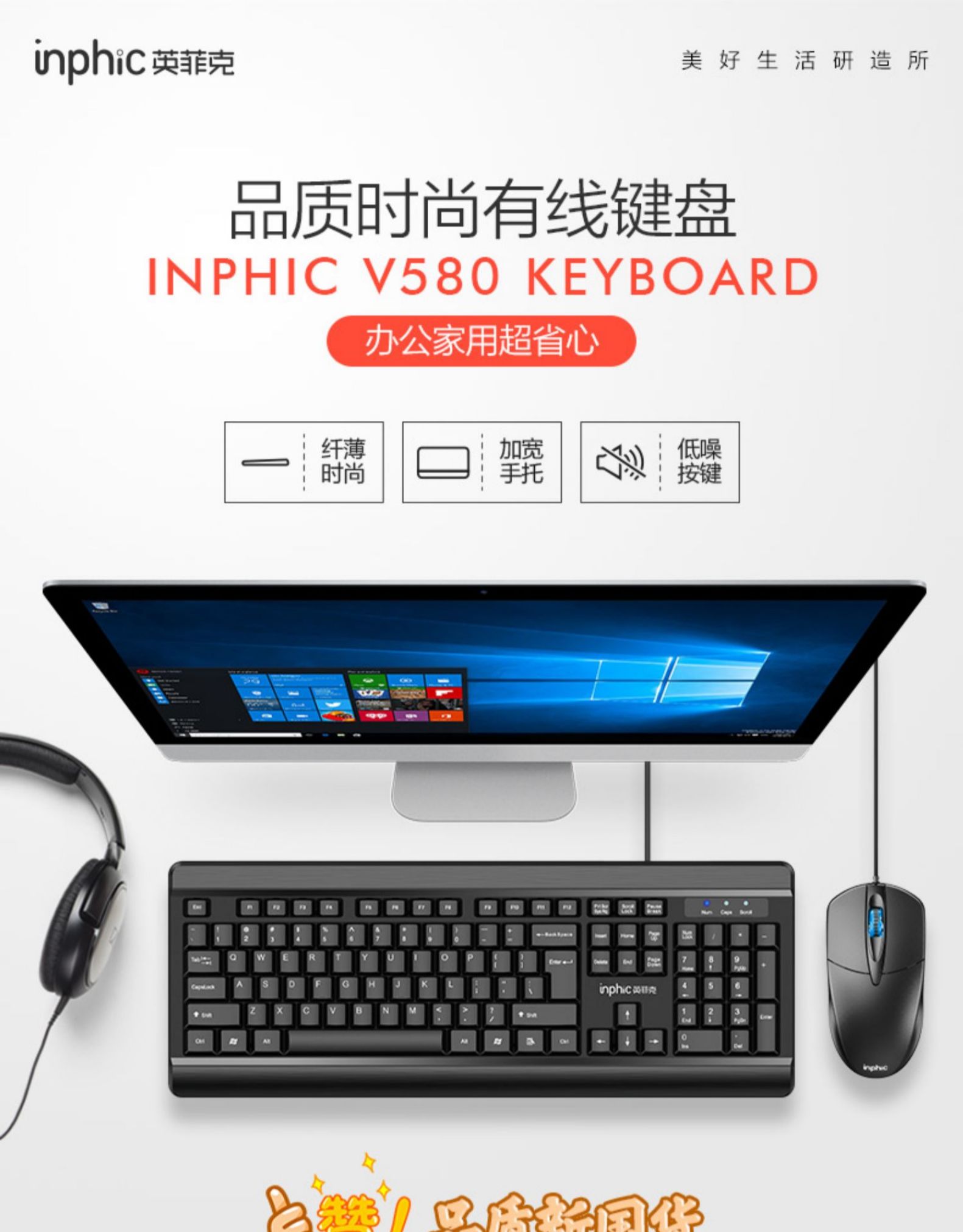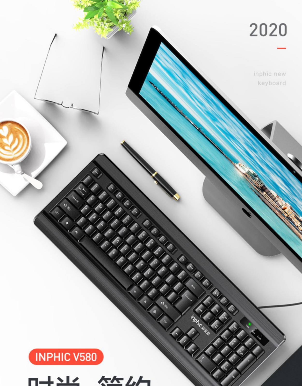英菲克v580键盘鼠标套装有线台式电脑家用机械手感USB外接笔记本防水静音无声办公专用打字外设电竞游戏键鼠