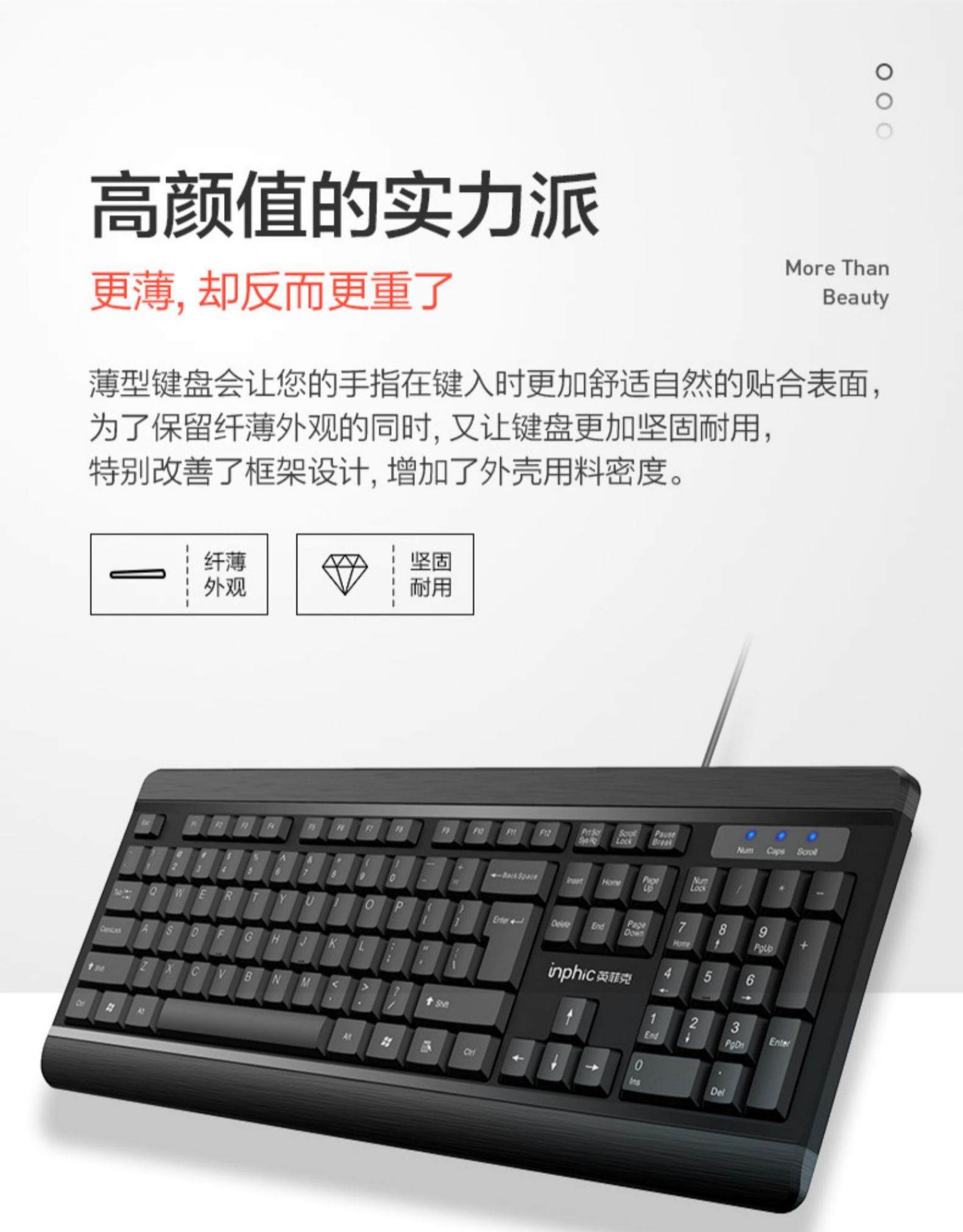 商品名称:英菲克v580键盘鼠标套装有线台式电脑家用机械手感USB外接笔记本防水静音无声办公专用打字外设电竞游戏键鼠