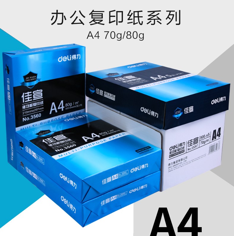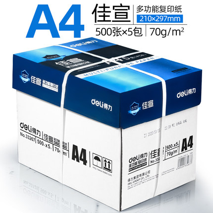 商品名称:得力A4复印纸打印白纸70g整箱5包装a4纸500张a4打印用纸80g办公用纸a4草稿纸学生用a4纸a4复印纸一箱批发包邮