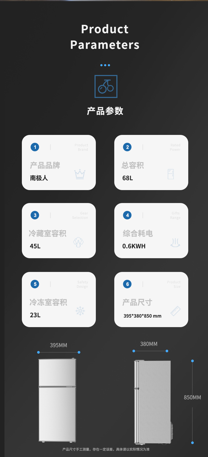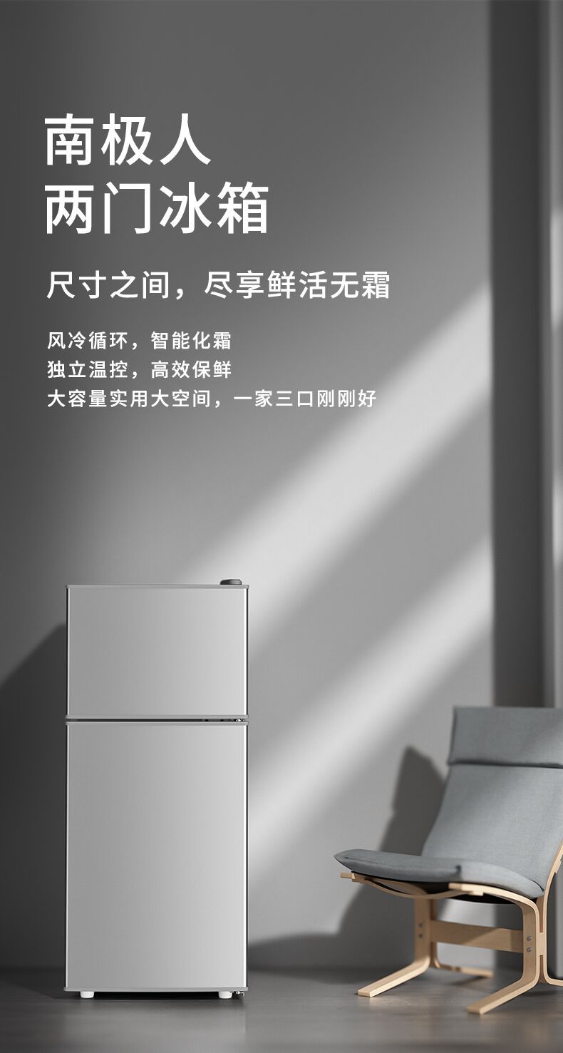 商品名称:南极人小型冰箱双开门家用宿舍租房用冷冻冷藏迷你电冰箱节能省电