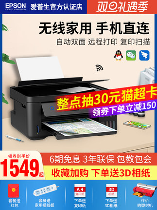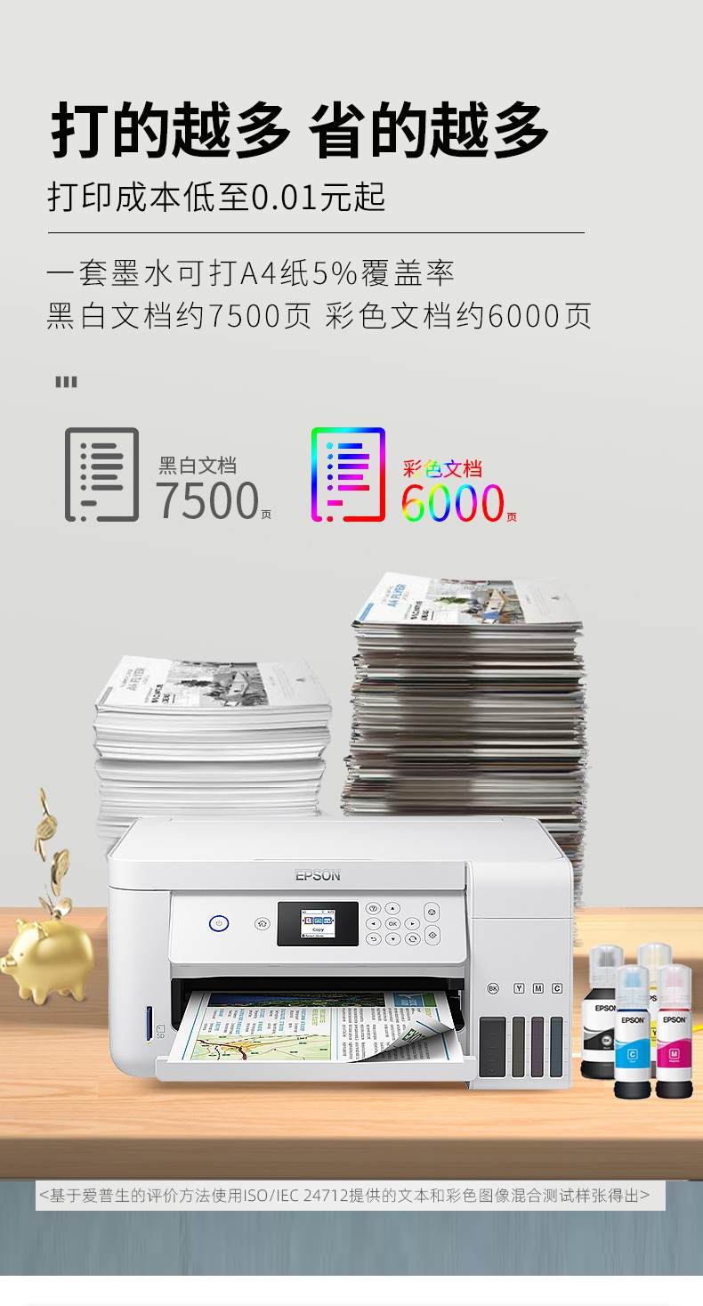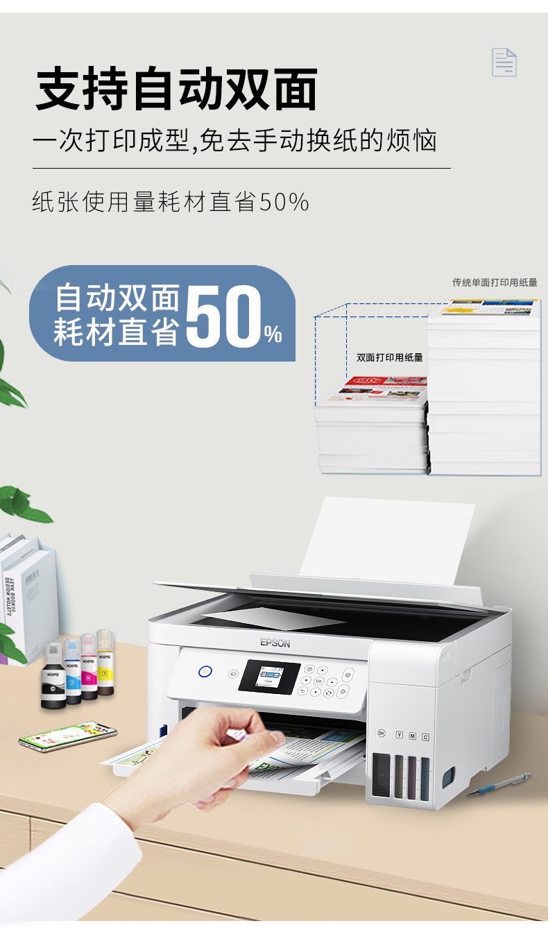 爱普生Epson L4168/4166彩色打印机复印一体机多功能a4连供喷墨照片扫描家用小型手机无线WIFI学生作业双面
