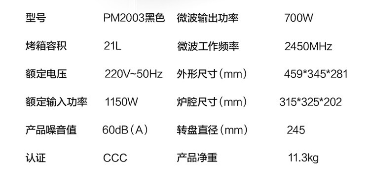 商品名称:一般贸易美的微波炉PM2003