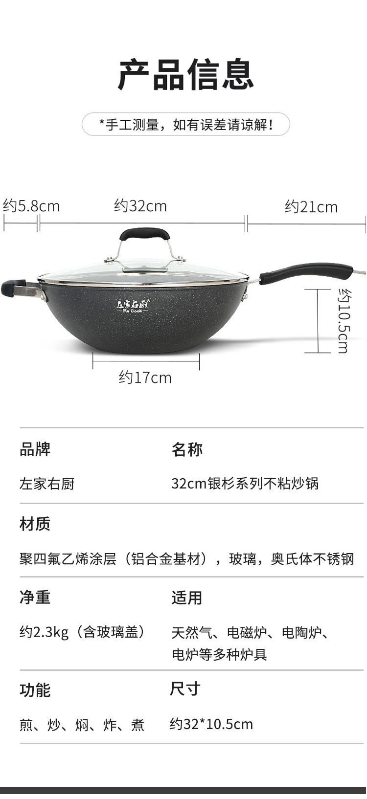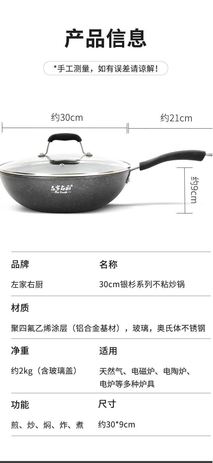 商品名称:左家右厨30cm银杉系列不粘炒锅RE1196A
