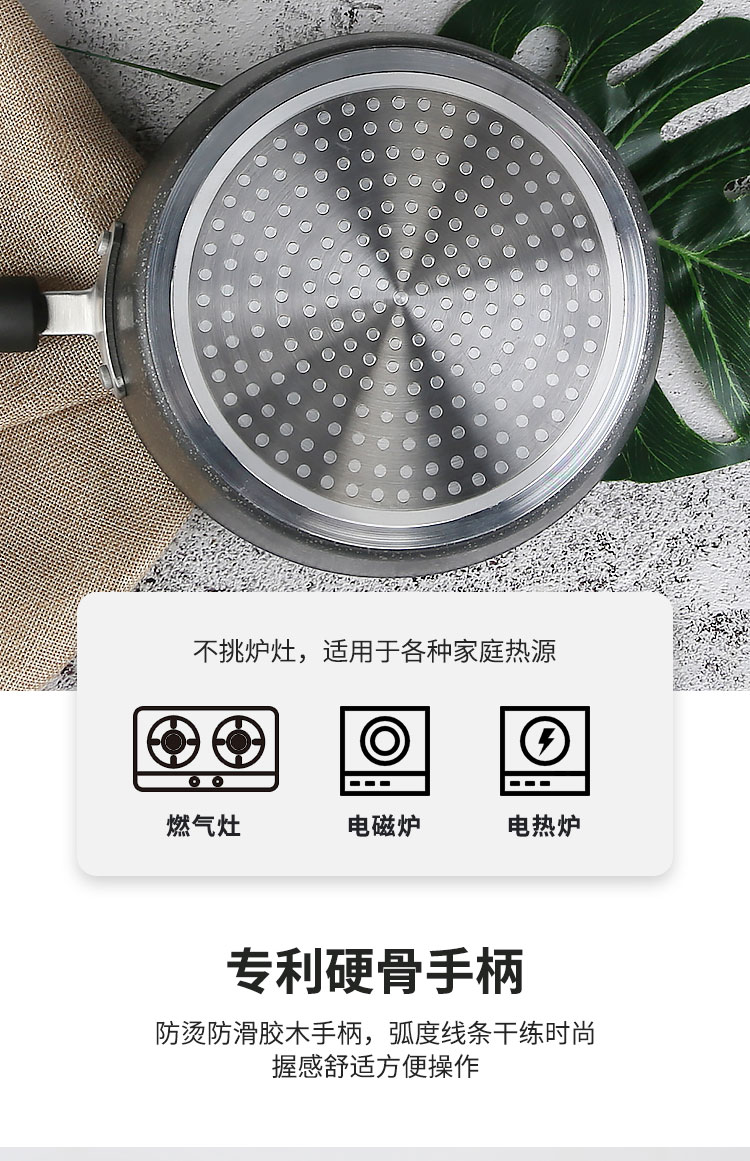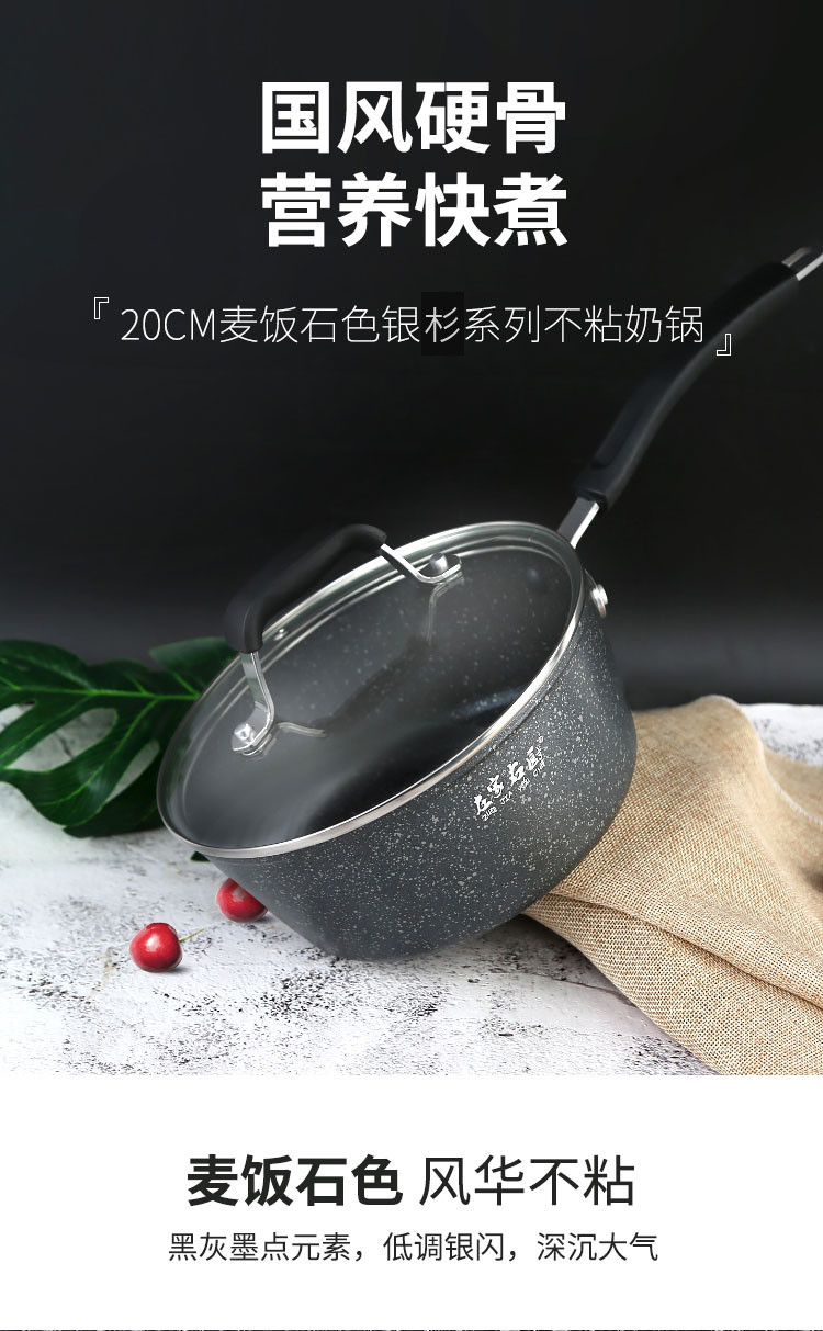 左家右厨20cm RE1198A麦饭石色银山系列不粘奶锅