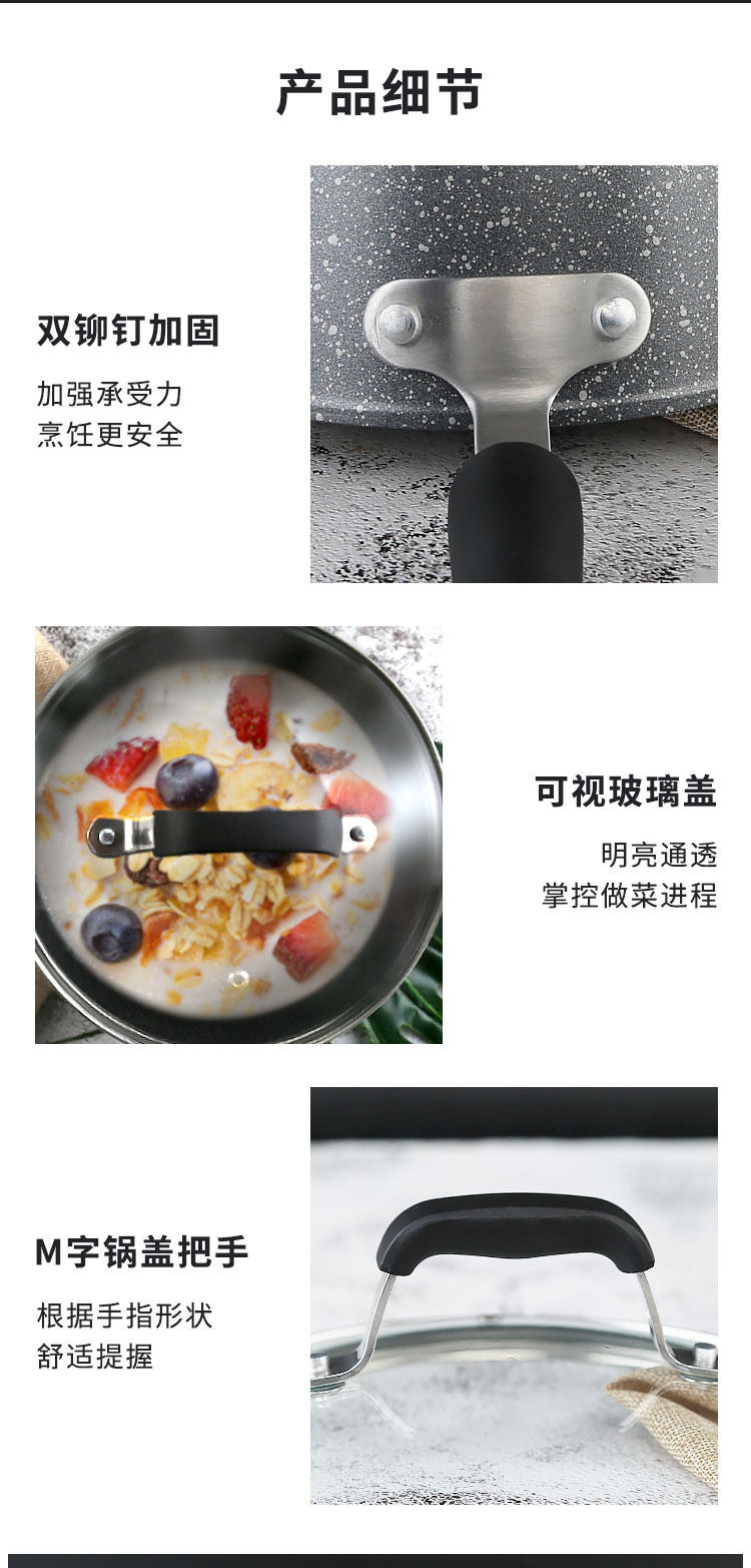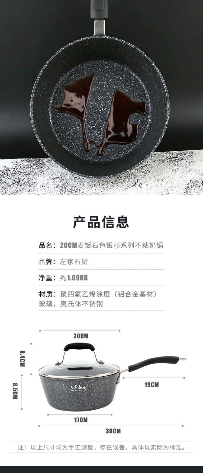 商品名称:左家右厨20cm RE1198A麦饭石色银山系列不粘奶锅