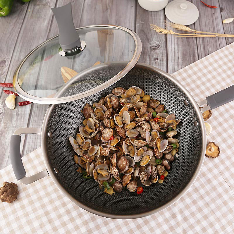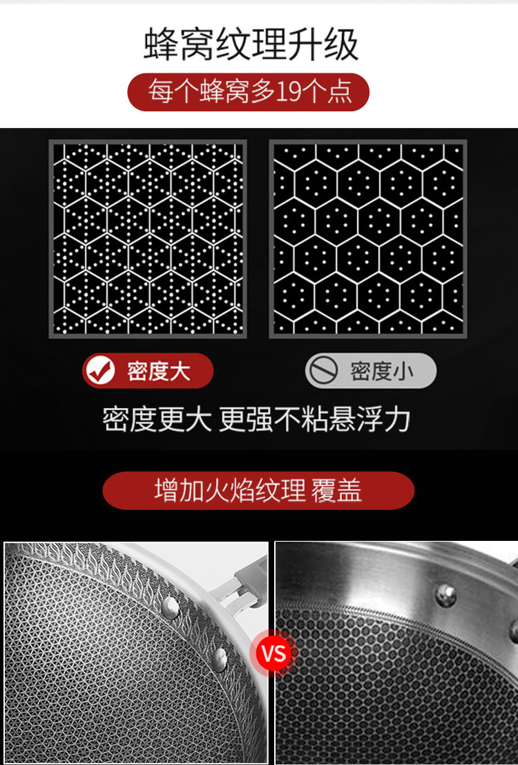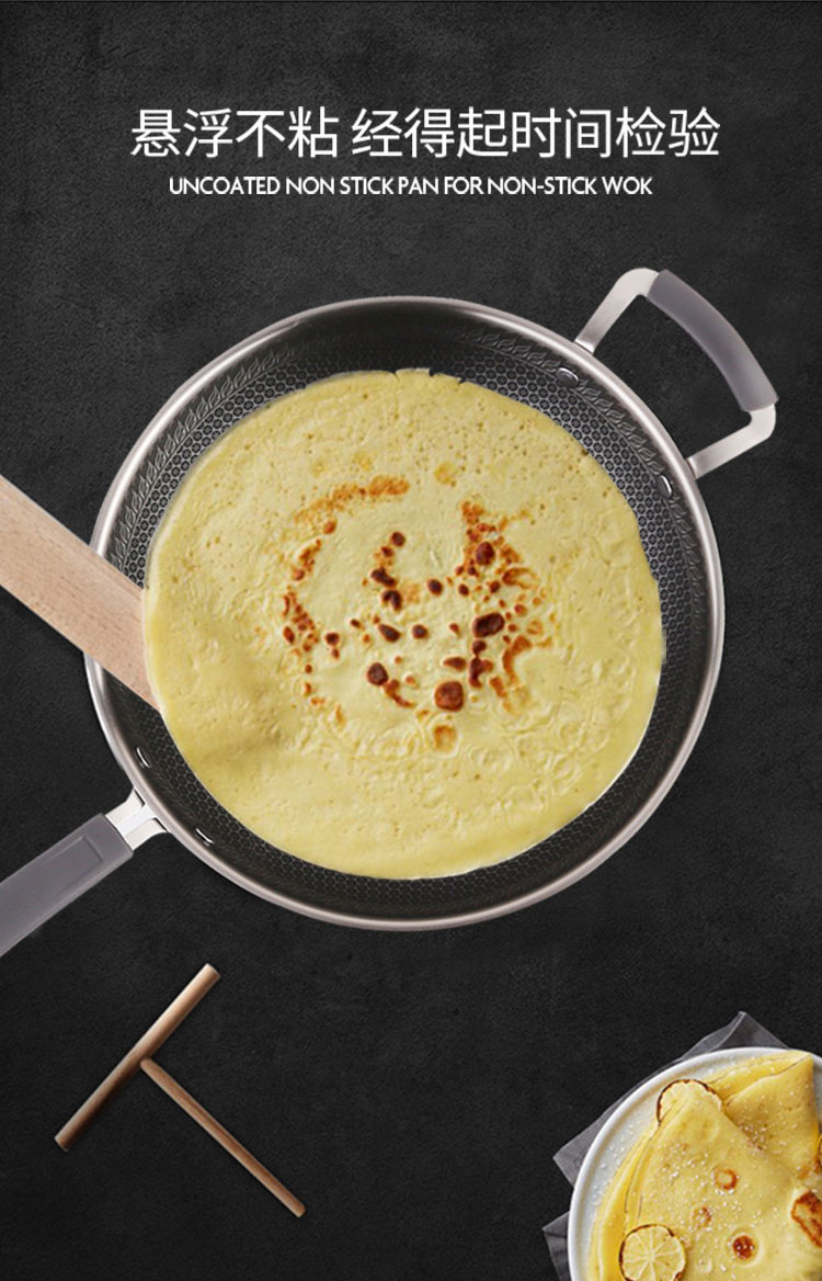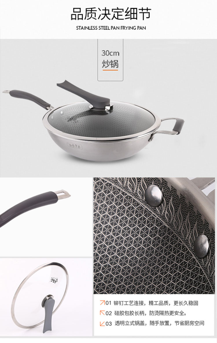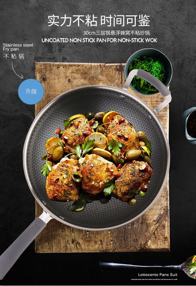 商品名称:30cm三层钢悬浮蜂窝不粘炒锅