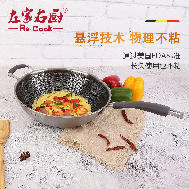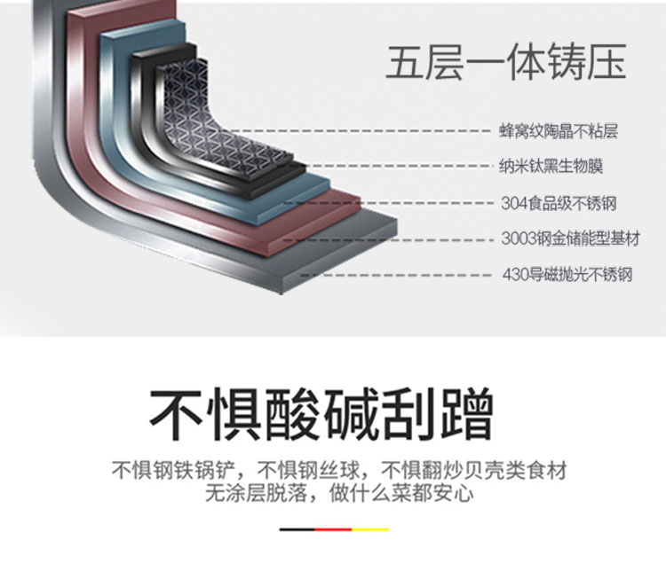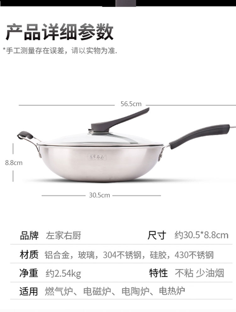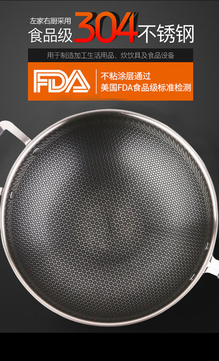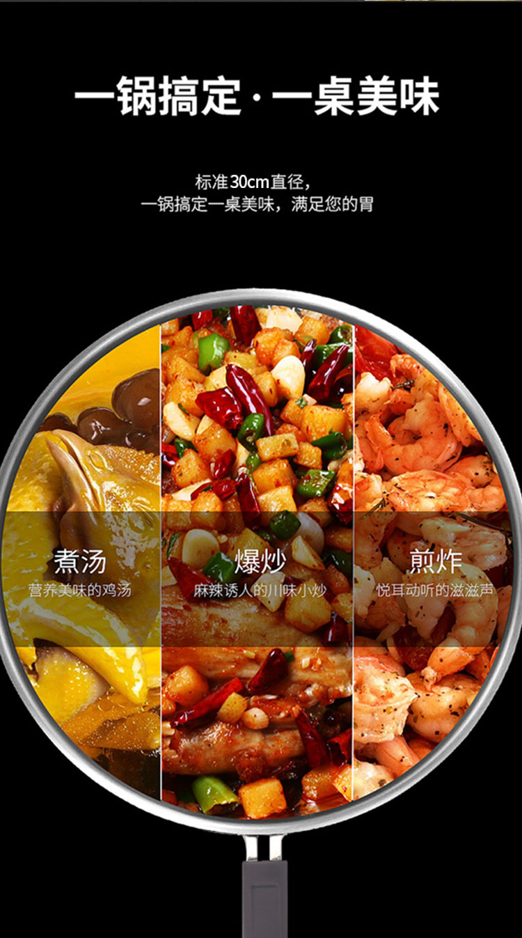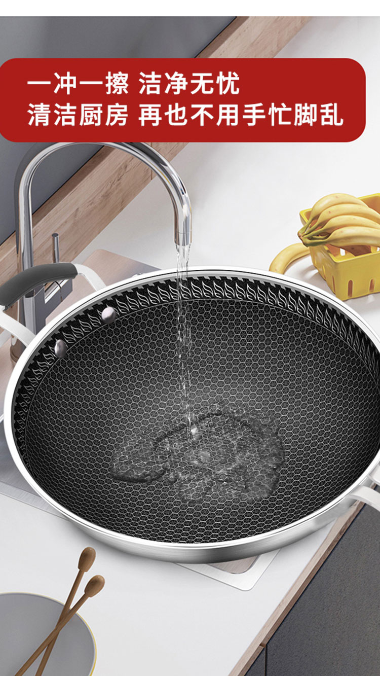 商品名称:30cm三层钢悬浮蜂窝不粘炒锅