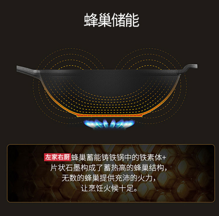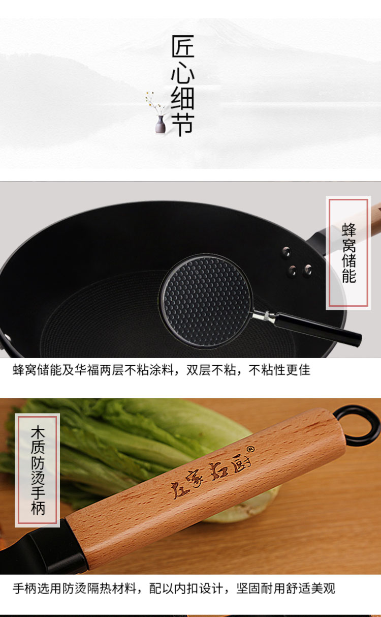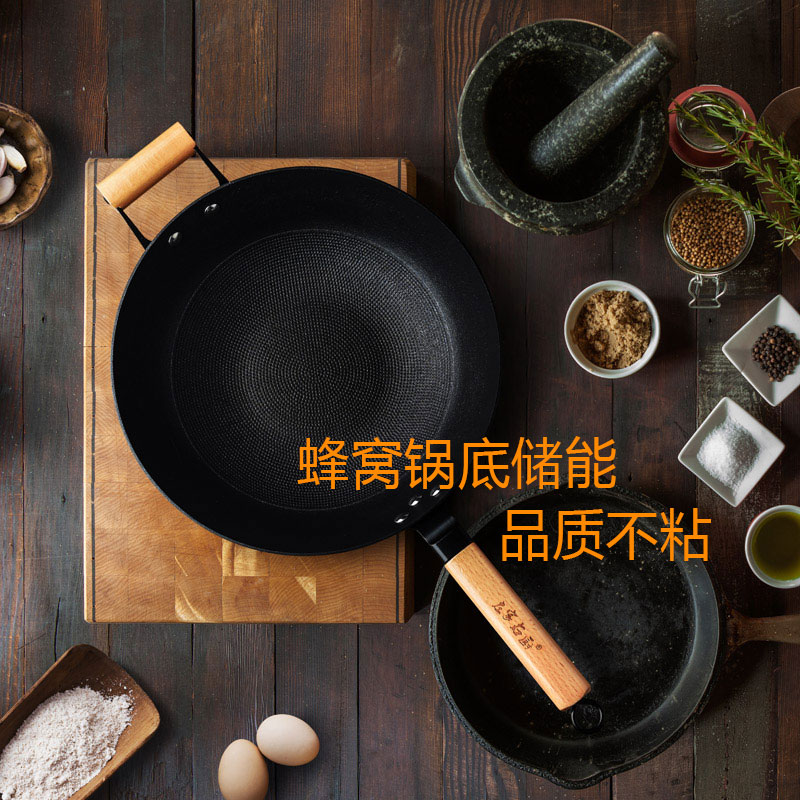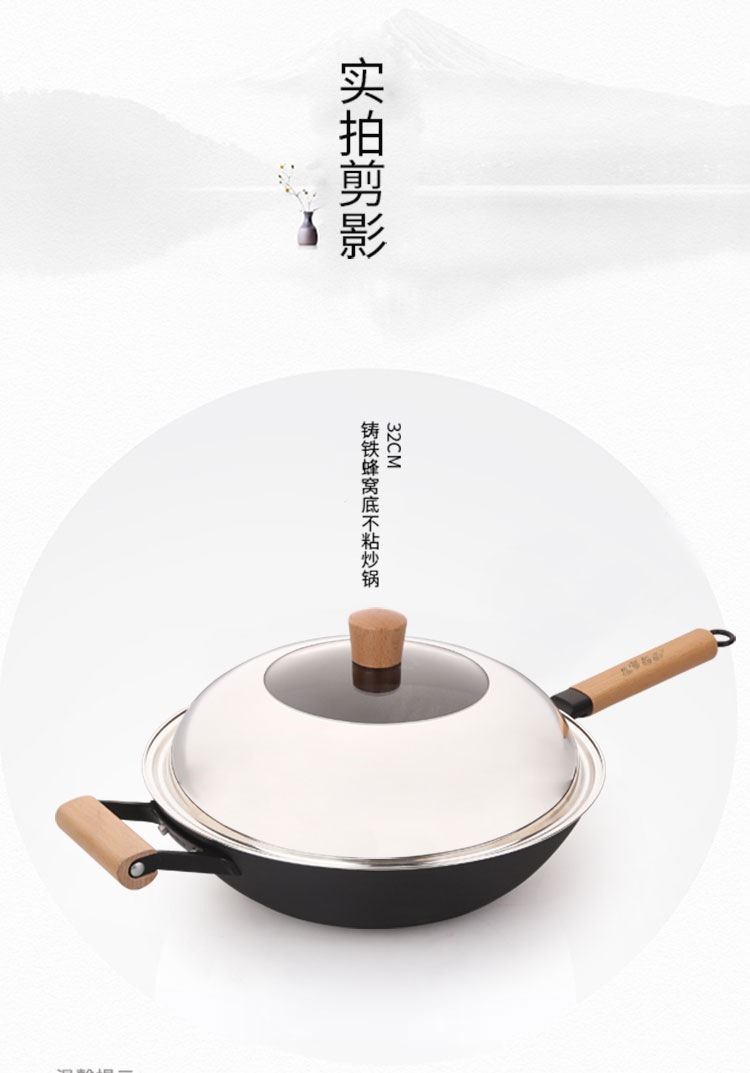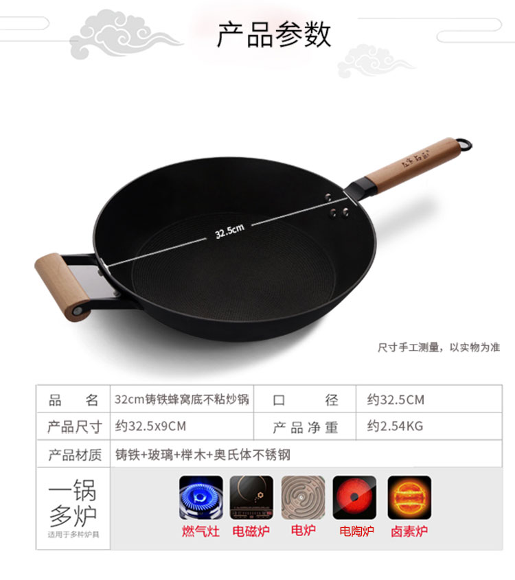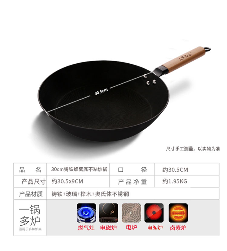 商品名称:32cm铸铁蜂窝不粘炒锅