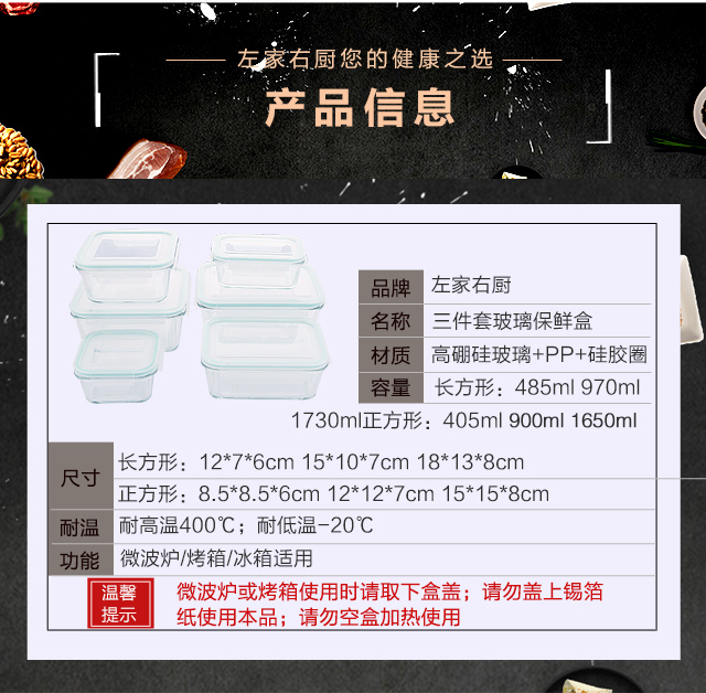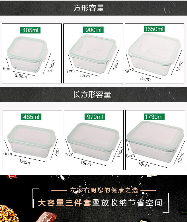 商品名称:3件套正方形玻璃收纳保鲜盒【长方形三件套可选】