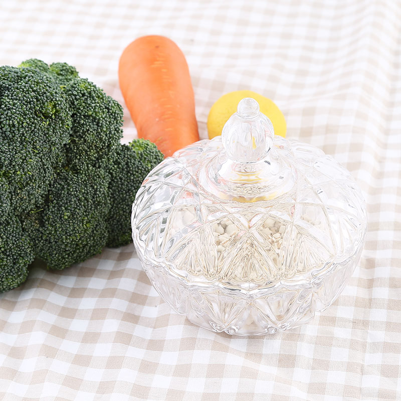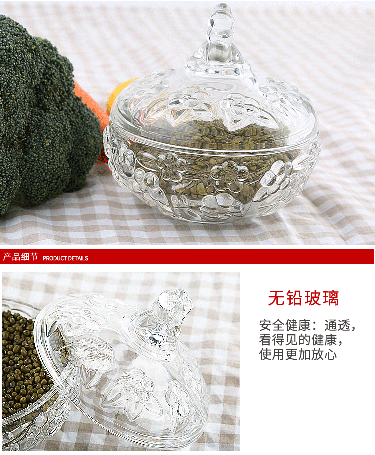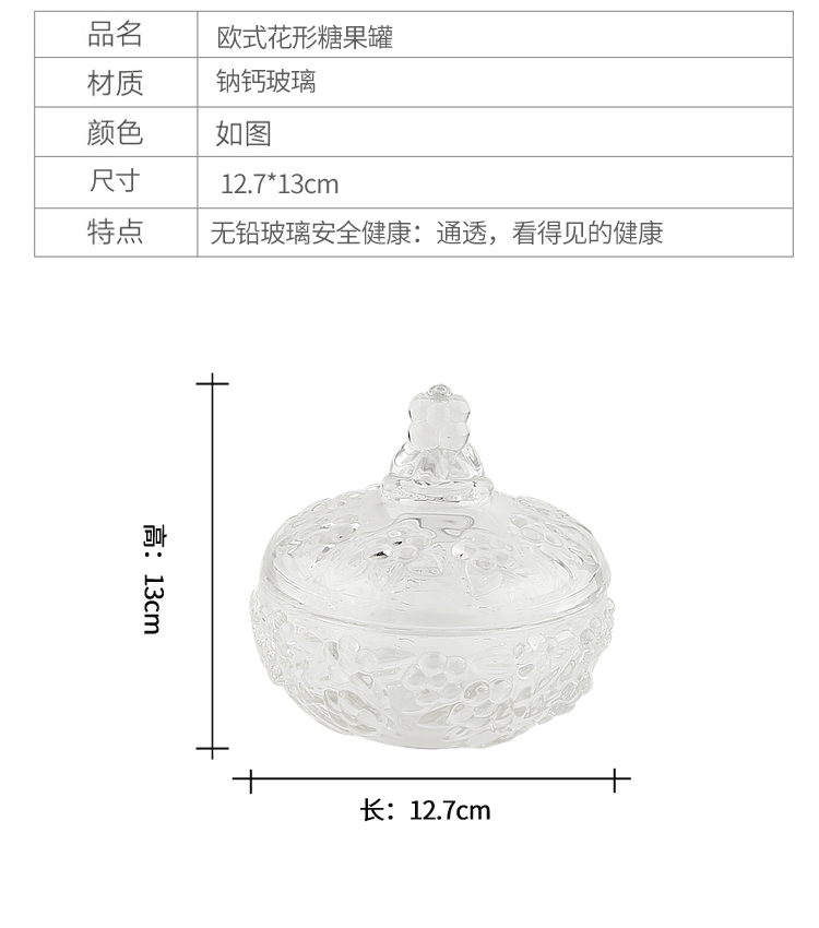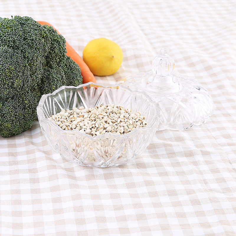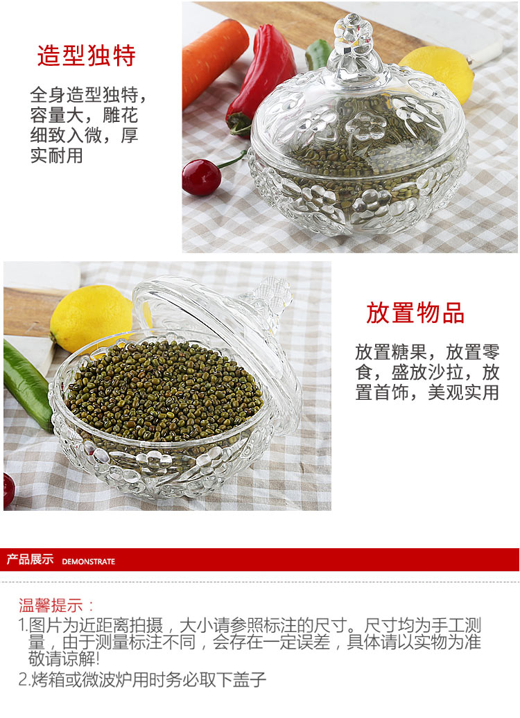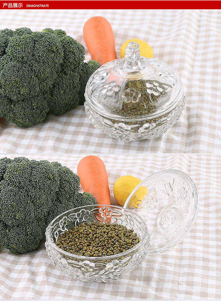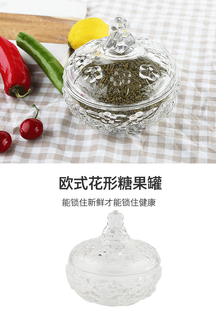商品名称:欧式创意水晶玻璃果盘带盖糖罐缸干盒储物碗婚庆糖果盒居家点心盘欧式花型糖果罐