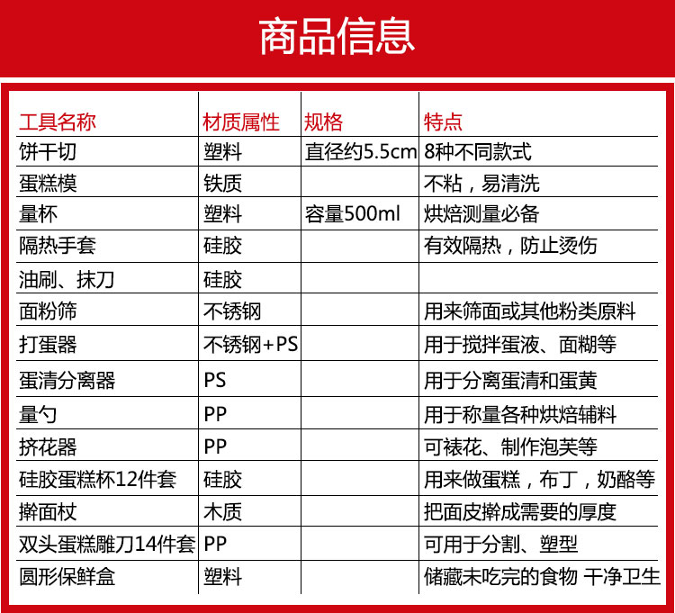 商品名称:左家右厨蛋糕模烘焙套装59件套RE3244
