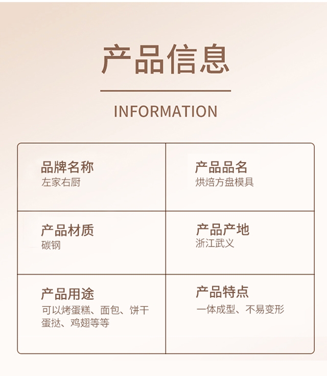 商品名称:左家右厨大号长方盘蛋糕模RE2058A