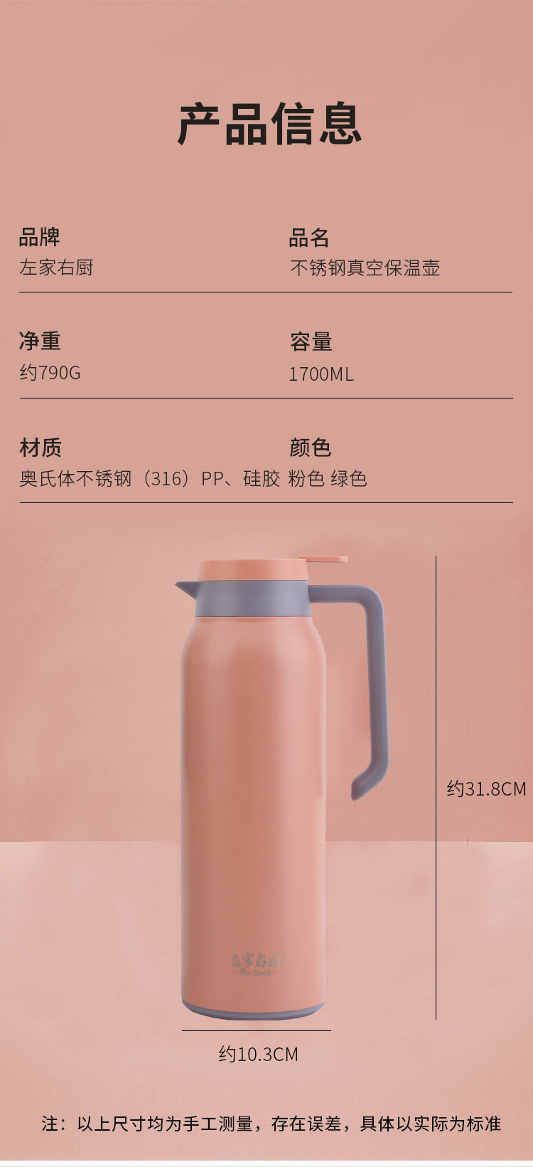 1700ml不锈钢真空保温壶