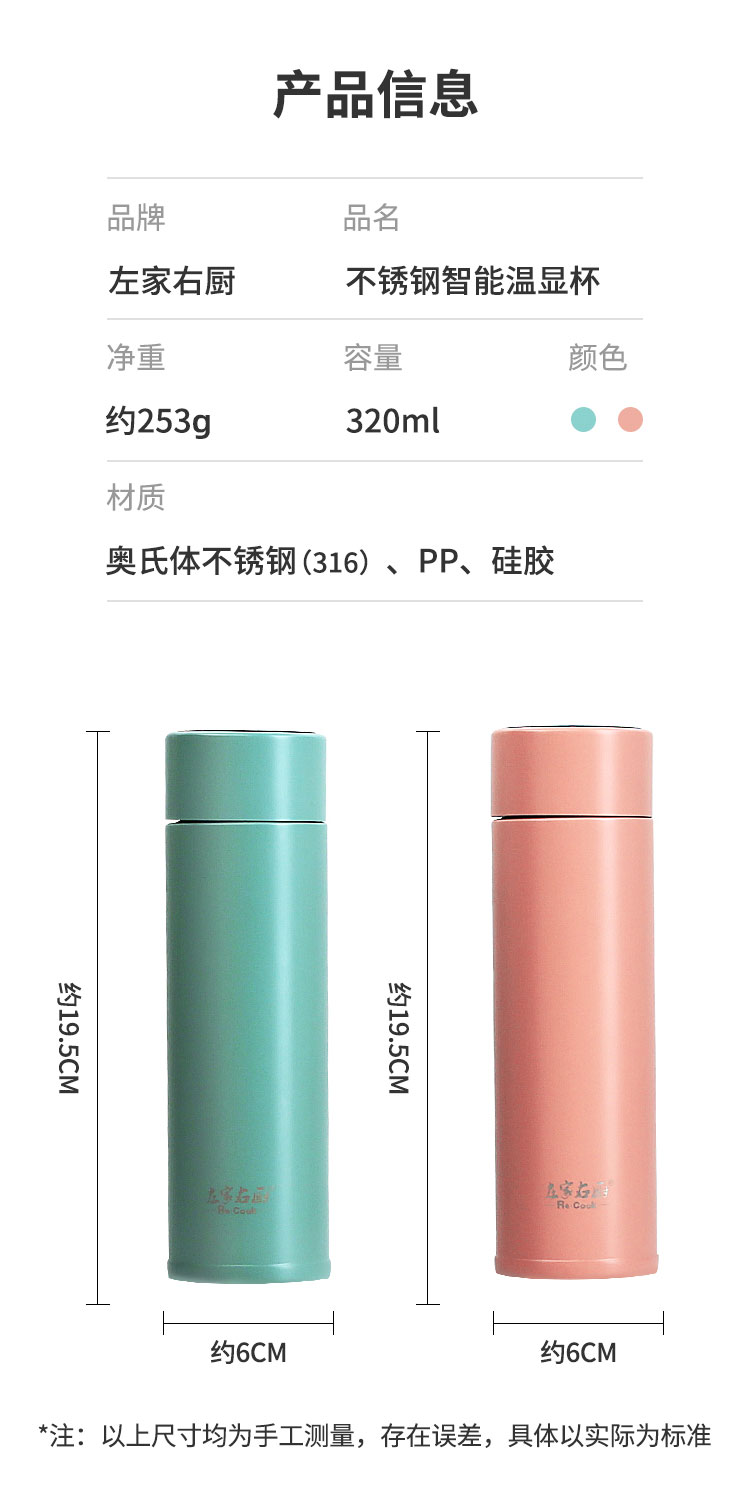 商品名称:320ml不锈钢智能温显杯