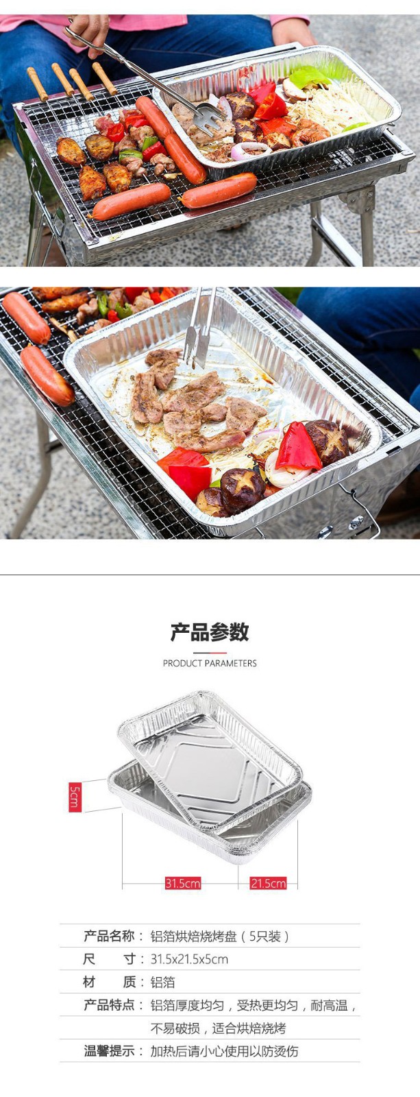 商品名称:大号铝箔烧烤盘(五只装)