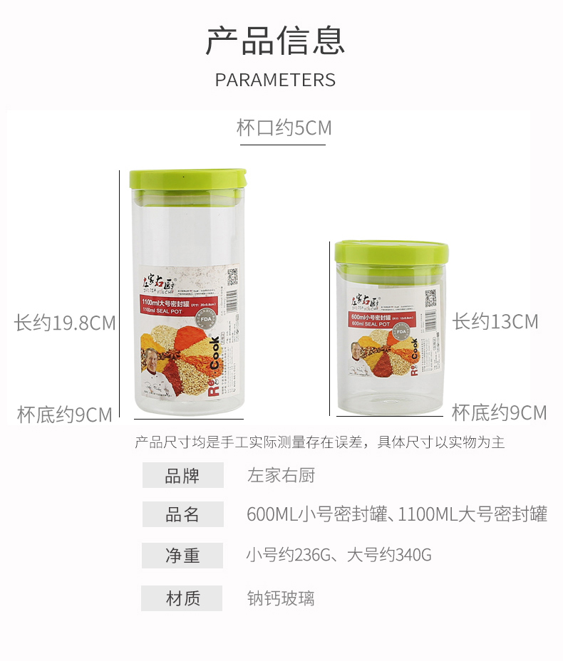 商品名称:左家右厨600ml小号密封罐RE6051