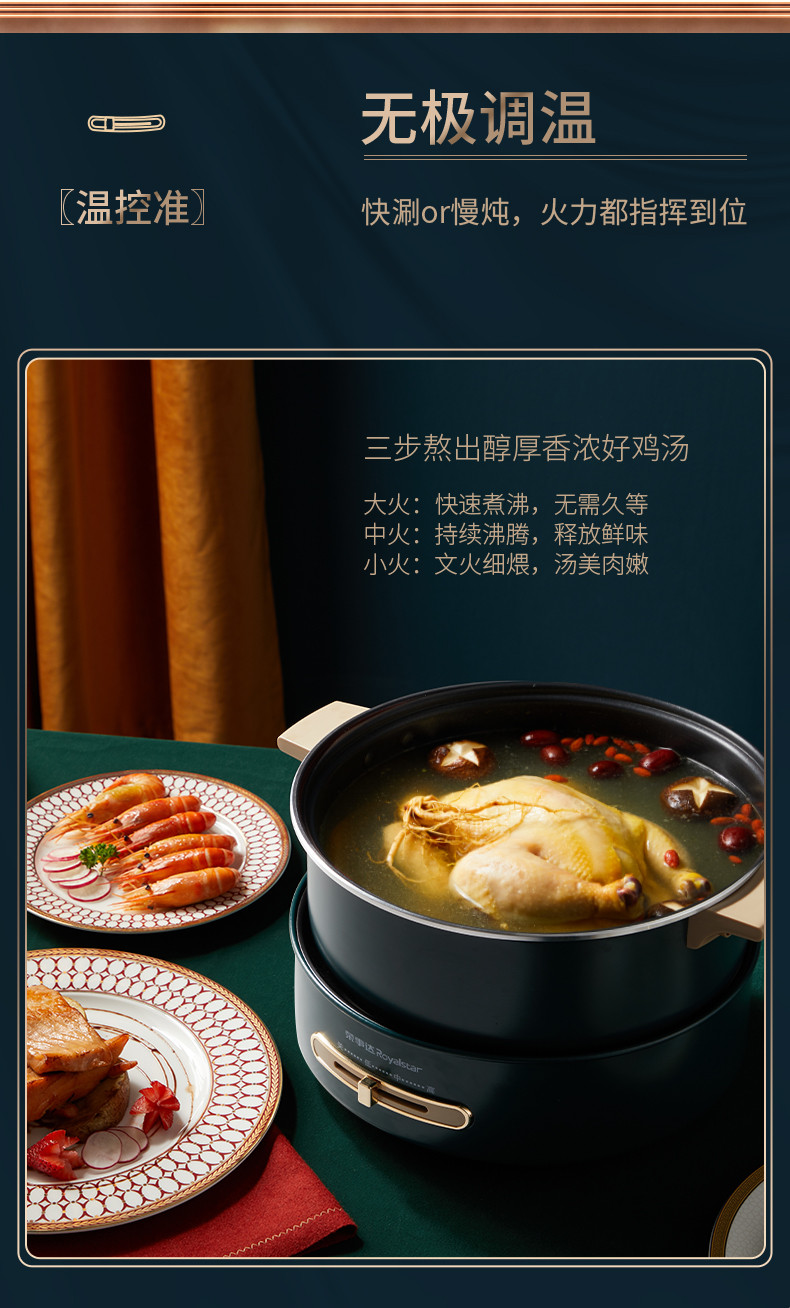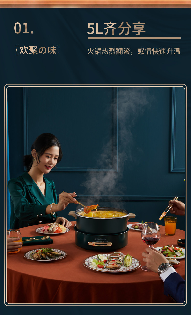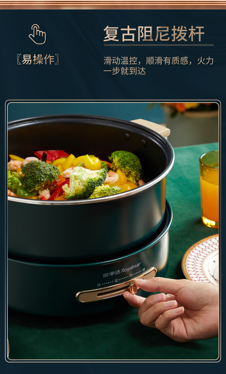 荣事达国潮电火锅大火力快刷电火锅5L装RHG-B50A9红色款