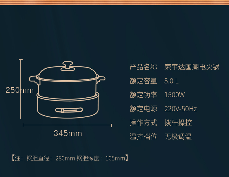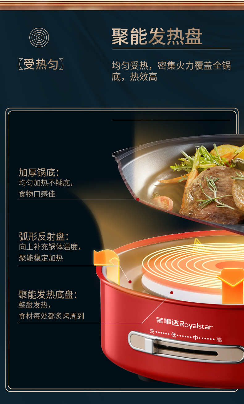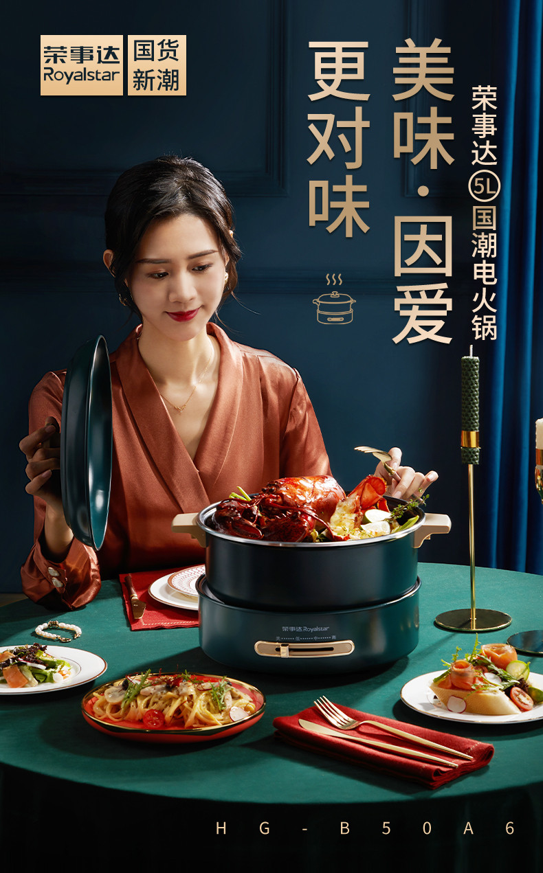 商品名称:荣事达国潮电火锅大火力快刷电火锅5L装RHG-B50A9红色款