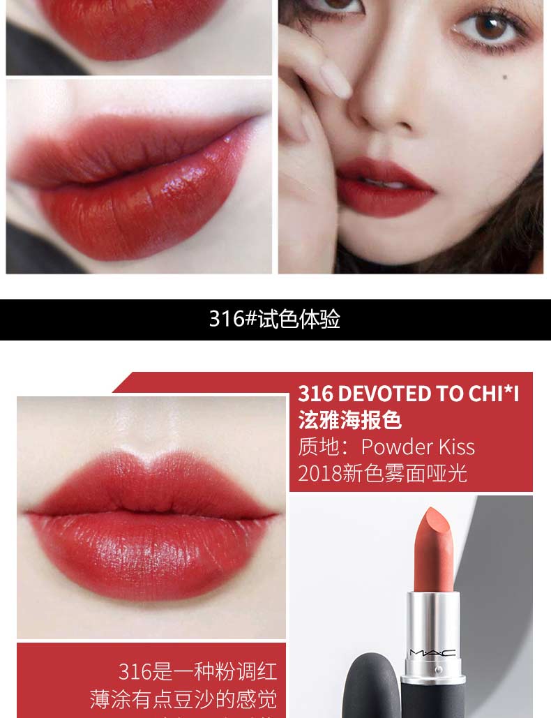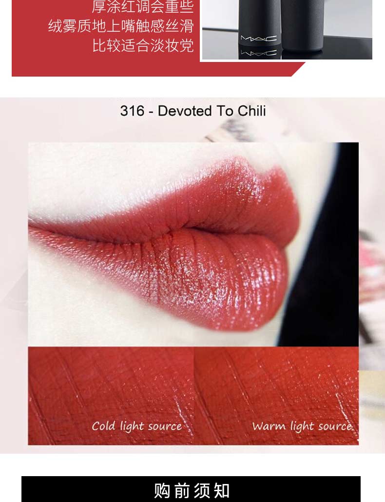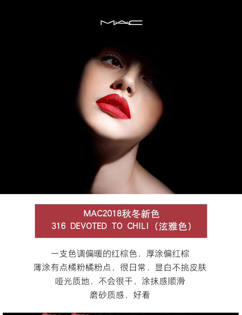 商品名称:【香港直邮】美国魅可MAC口红3gdevotedtochili辣椒红棕316