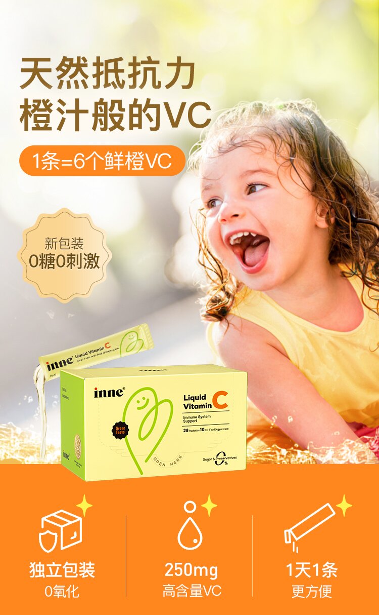 商品名称:【保税】童年时光INNE甜橙王子维生素C婴幼儿童液体VC活力营养液条包装 280ml/盒保质期2024.3