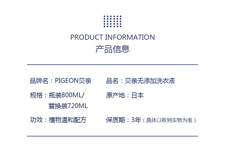 商品名称:日本贝亲Pigeon婴儿宝宝无添加温和洗衣液800ml*4