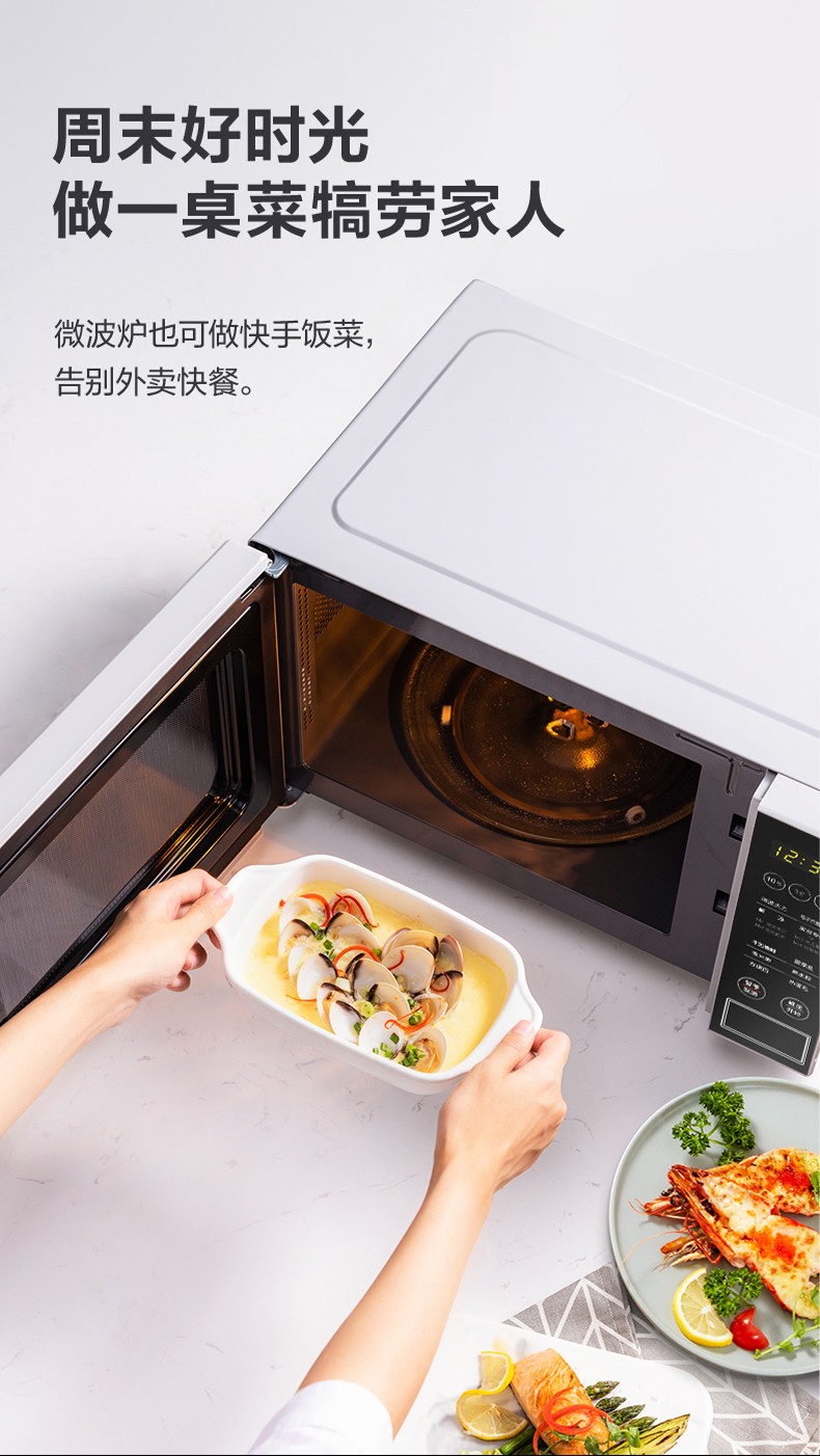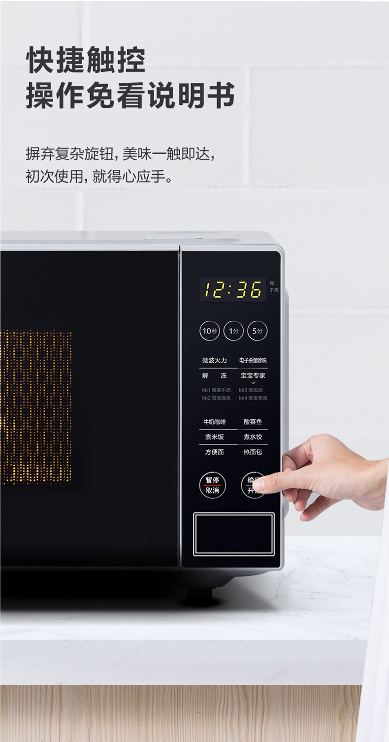 商品名称:美的(Midea)快捷微波炉 微电脑操控 智能蒸煮菜单 21升平板加热PM2003