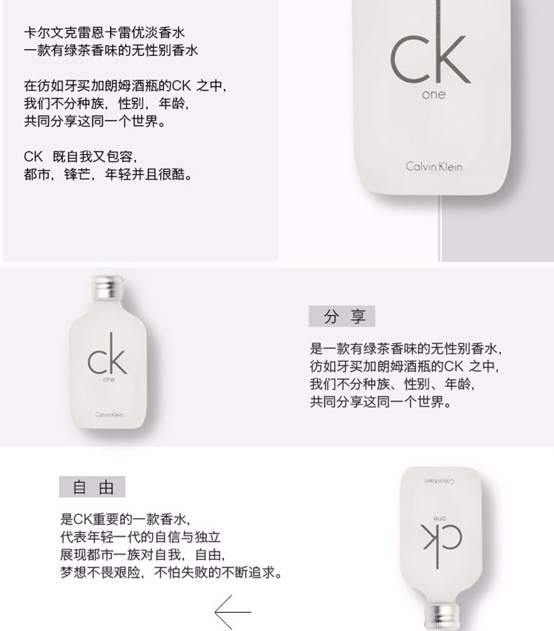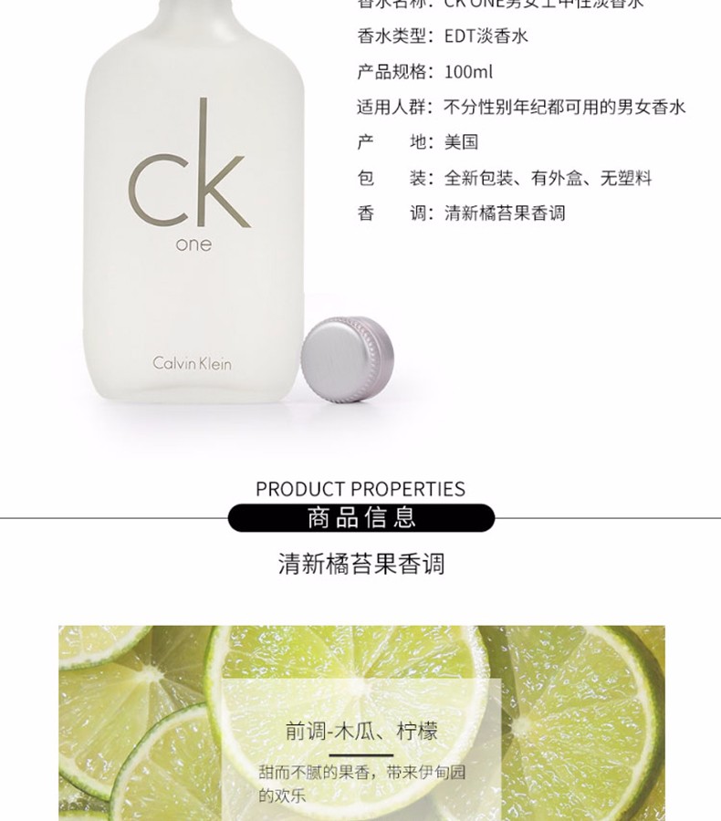 商品名称:【香港直邮】Calvin Klein ONE香水 100ml