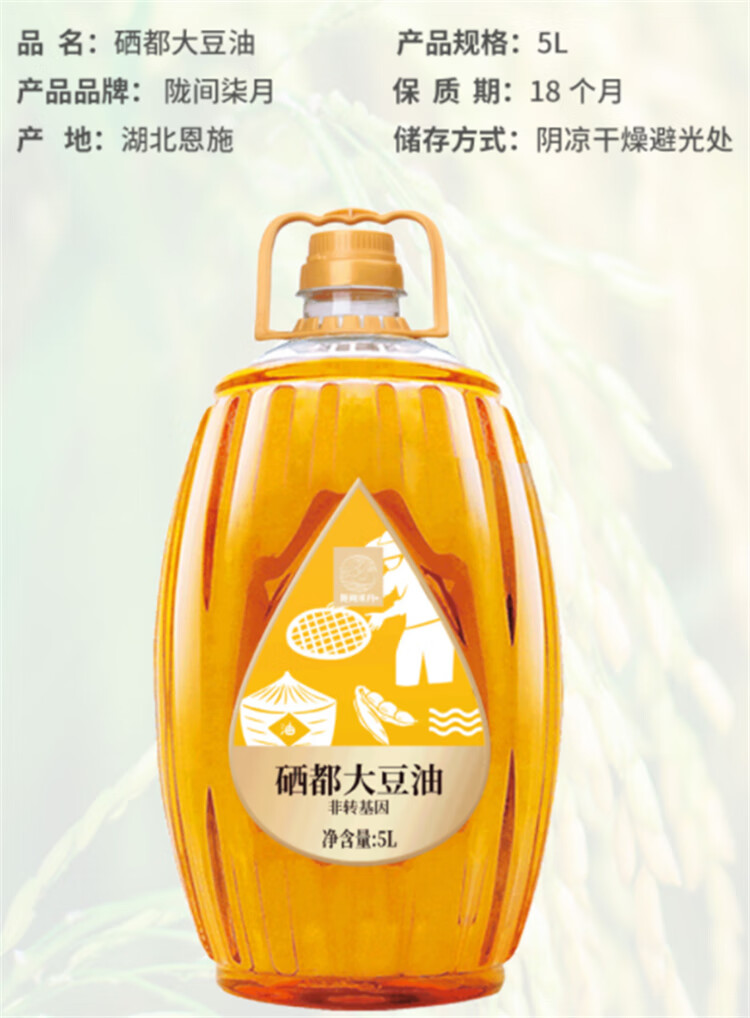 商品名称:陇间柒月 硒都大豆油非转基因色拉油 家庭烘焙炒菜食用油植物油 5172