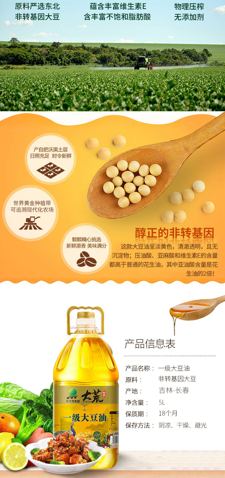 商品名称:北大荒 大荒印象非转基因一级大豆油5L