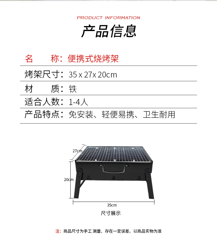 商品名称:狼行者便携式家庭烧烤架LXZ-5034 铁材质耐高温