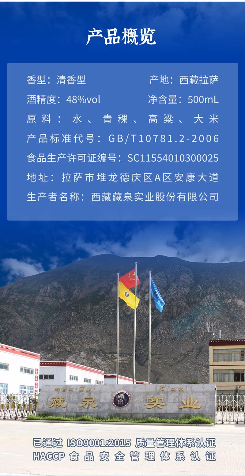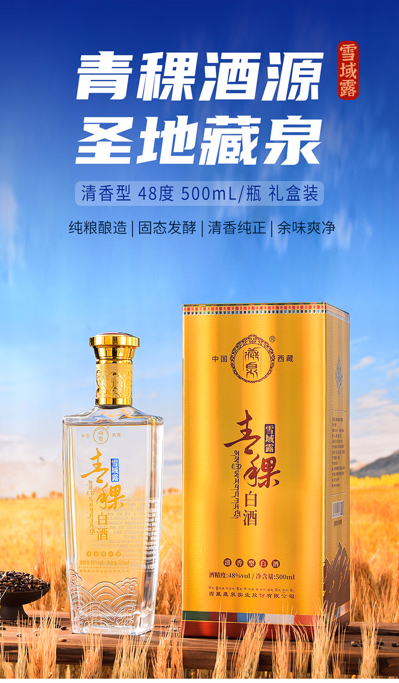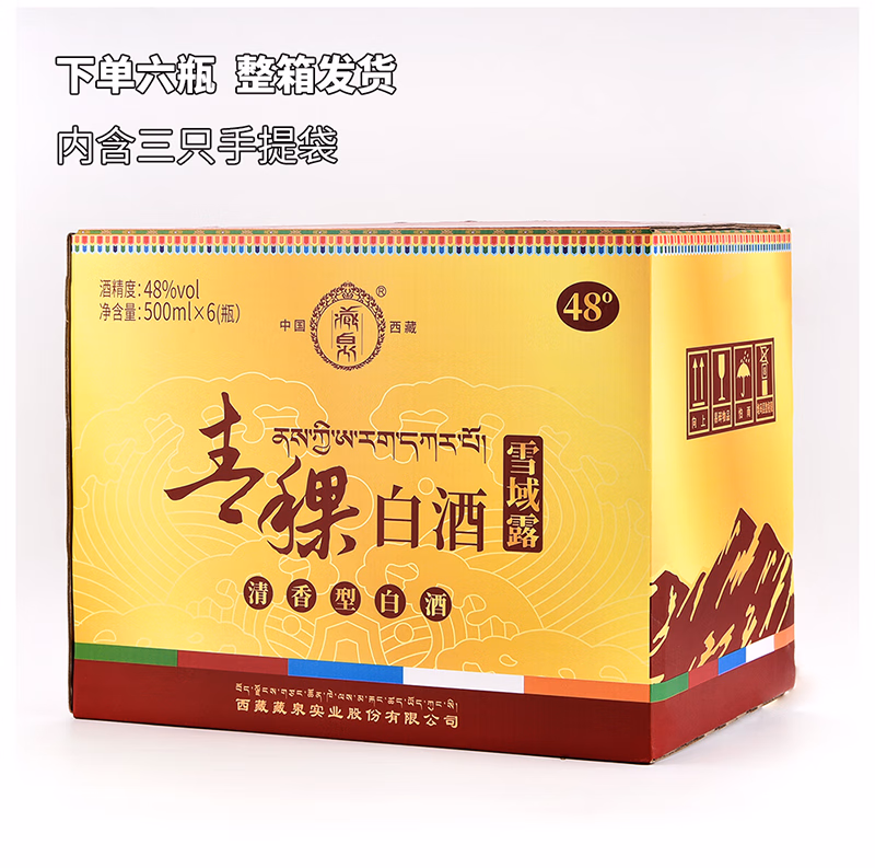 商品名称:藏泉西藏青稞酒雪域露西藏特产清香型48度500mL*6瓶/箱