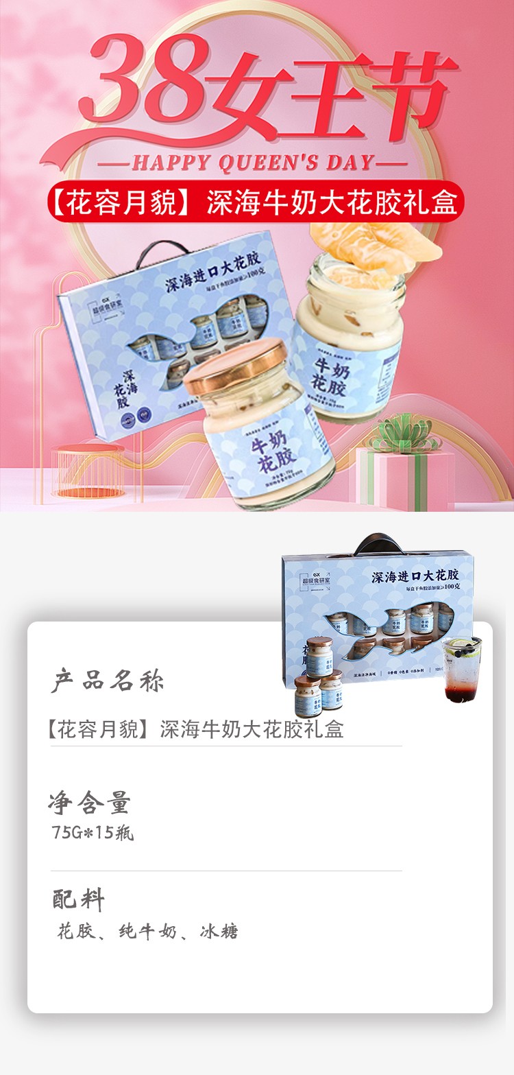 商品名称:贝师傅深海牛奶大花胶礼盒 女神节臻品75g*15瓶
