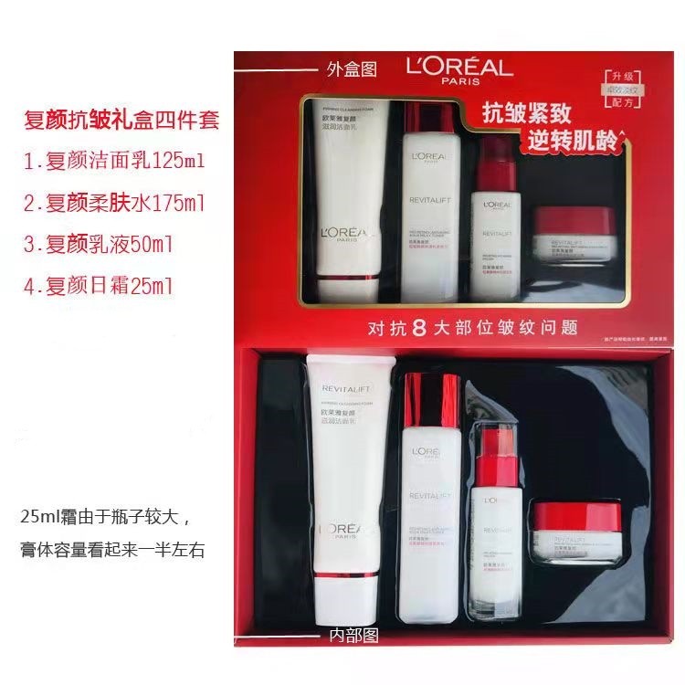 欧莱雅复颜抗皱紧致系列礼盒(柔肤水175ml+日霜25ml+乳液50ml+洁面乳125ml)