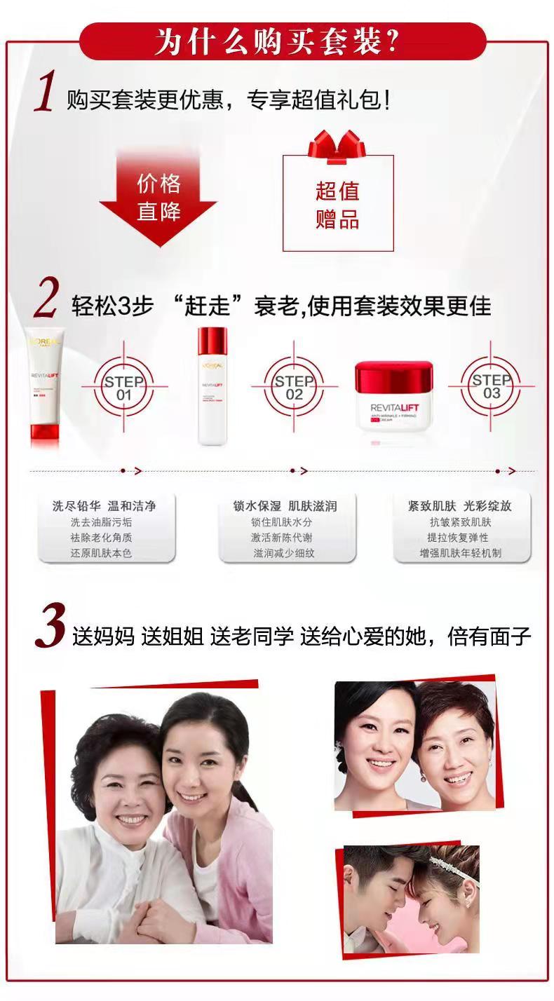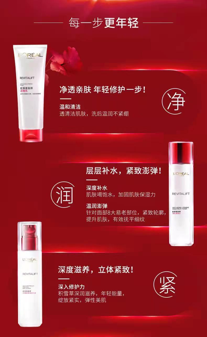 商品名称:欧莱雅复颜抗皱紧致系列礼盒(柔肤水175ml+日霜25ml+乳液50ml+洁面乳125ml)