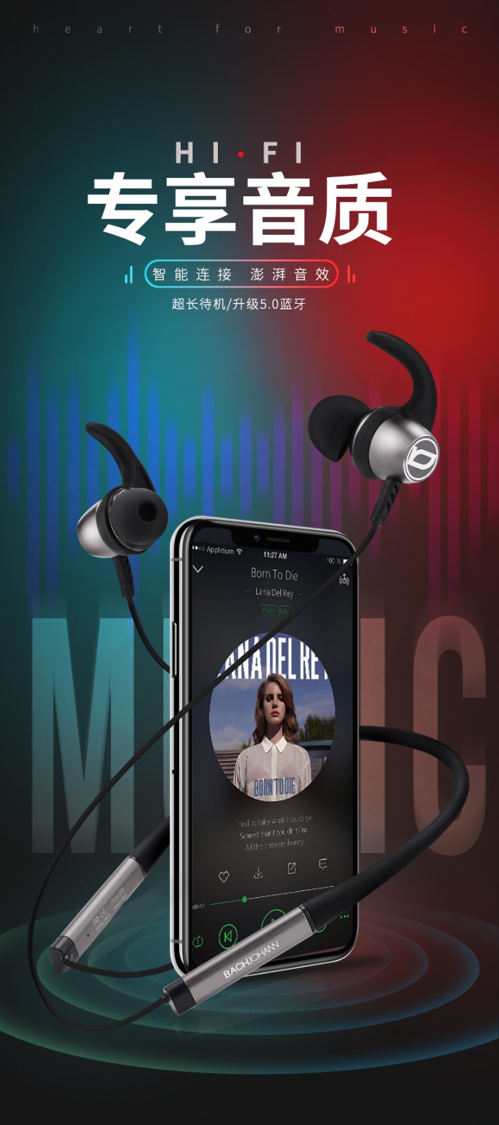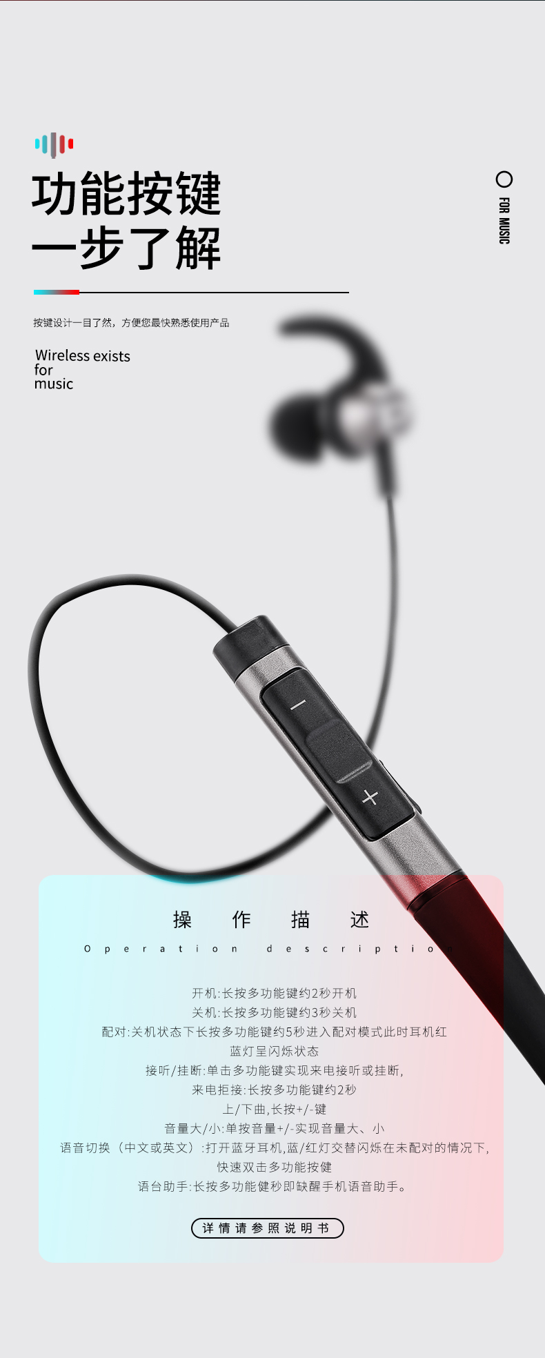 德国巴赫颈戴式智能运动蓝牙耳机NE03