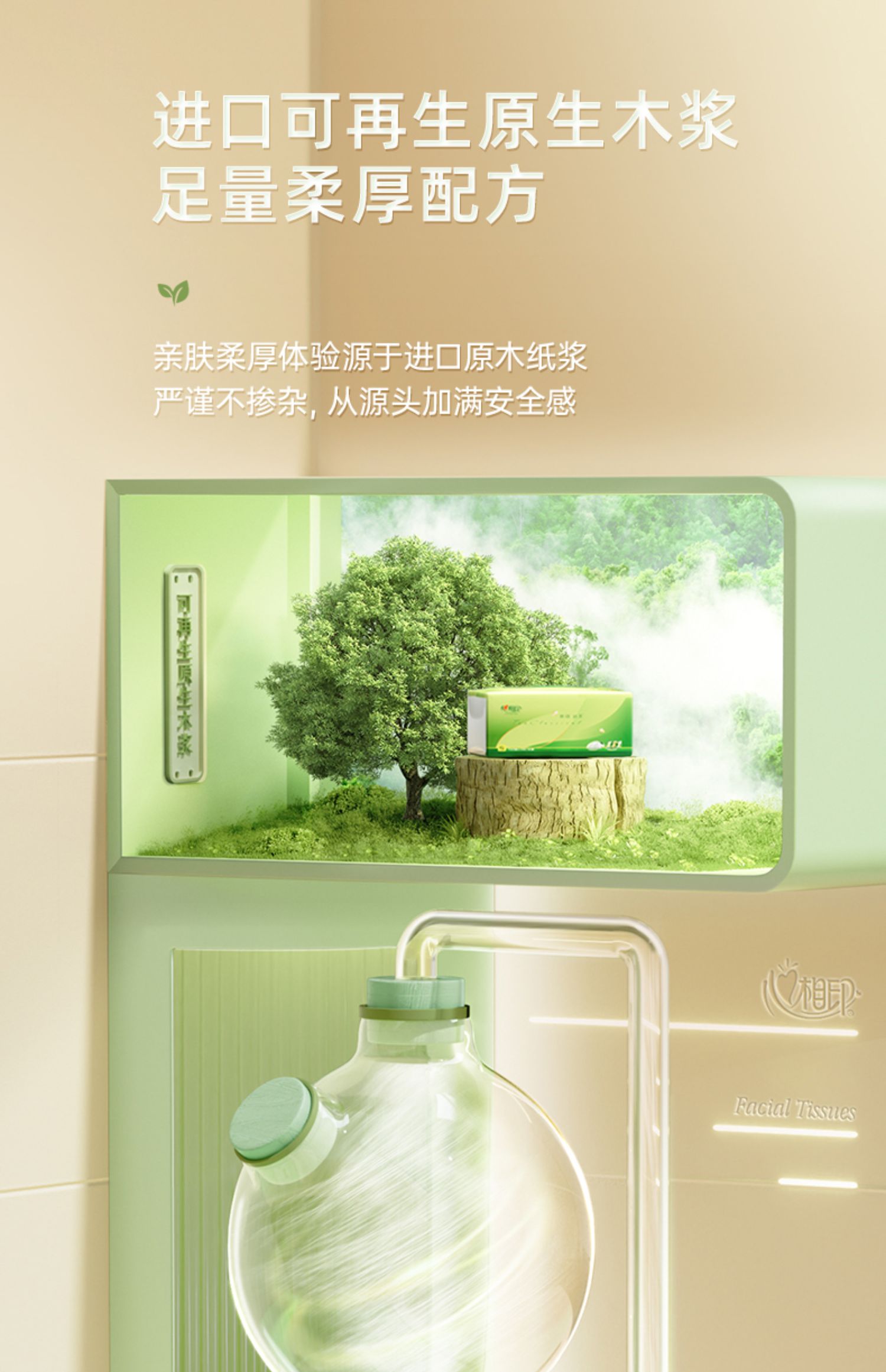 DT15100(箱装)心相印茶语丝享100抽*20包三层塑装纸面巾