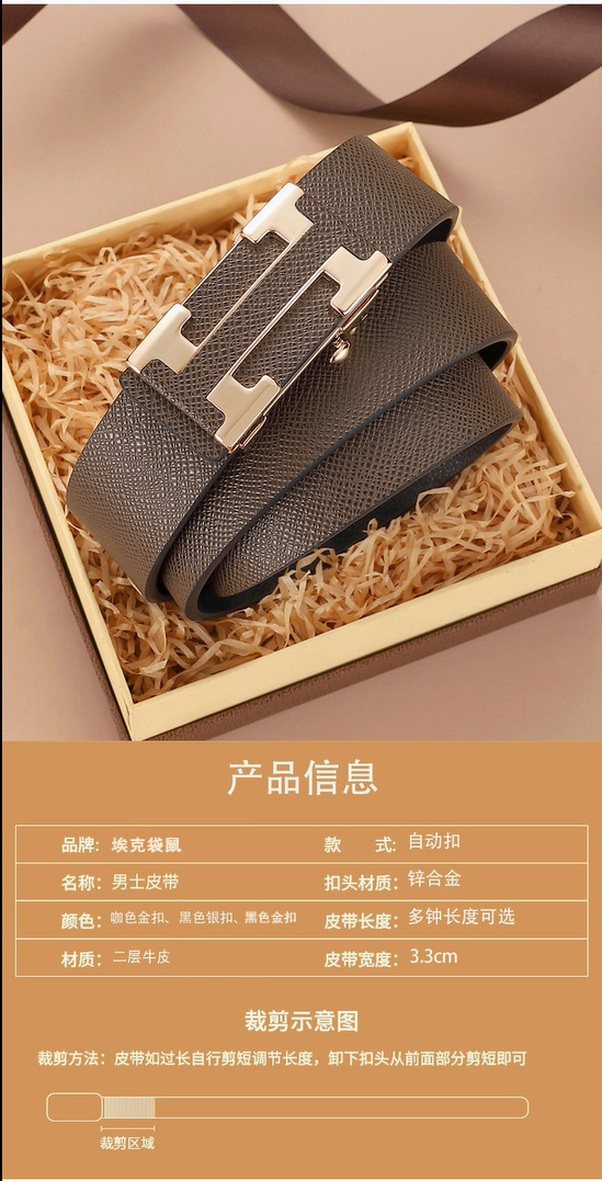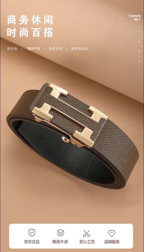 商品名称:男士皮带男百搭商务休闲裤带中青年潮流裤腰带黑色金扣120cm