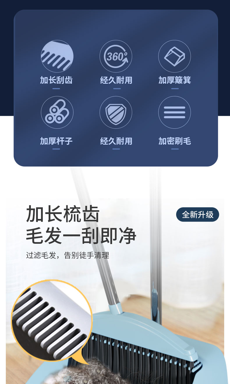 商品名称:沐小木扫把簸箕一套装 防风梳齿型簸箕笤帚梳齿型篦齿畚箕扫地家用扫帚 2件组合