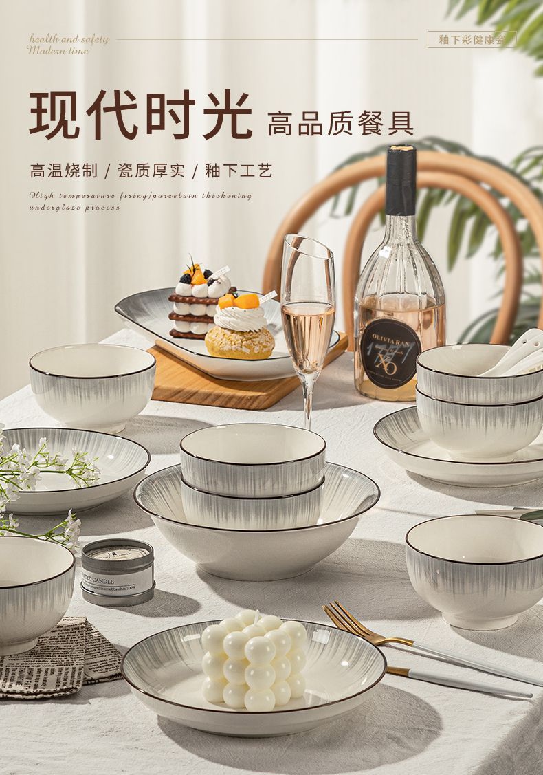 尚行知是陶瓷碗碟套装家用现代时光套装18件套
