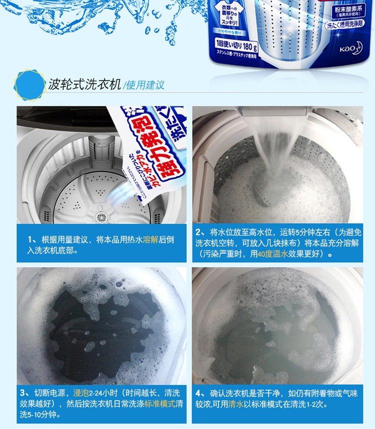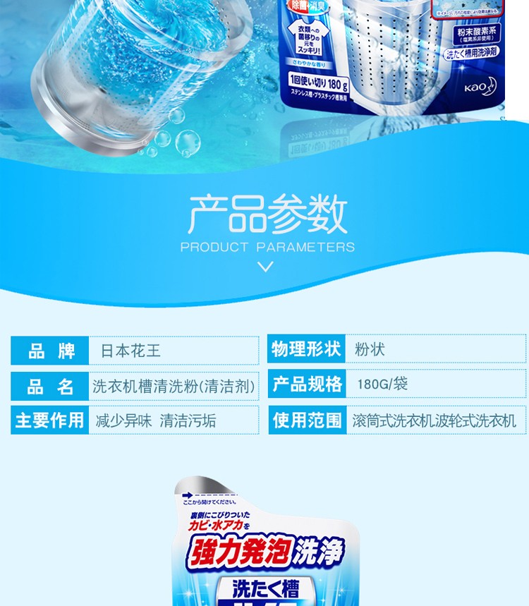 商品名称:日本花王波轮洗衣机槽清洗粉180g*2