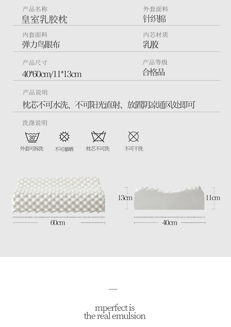 商品名称:优艺尚 泰国皇家乳胶枕头 天然乳胶 护颈舒适 成人单人记忆枕芯 40*60 UZ21-1098