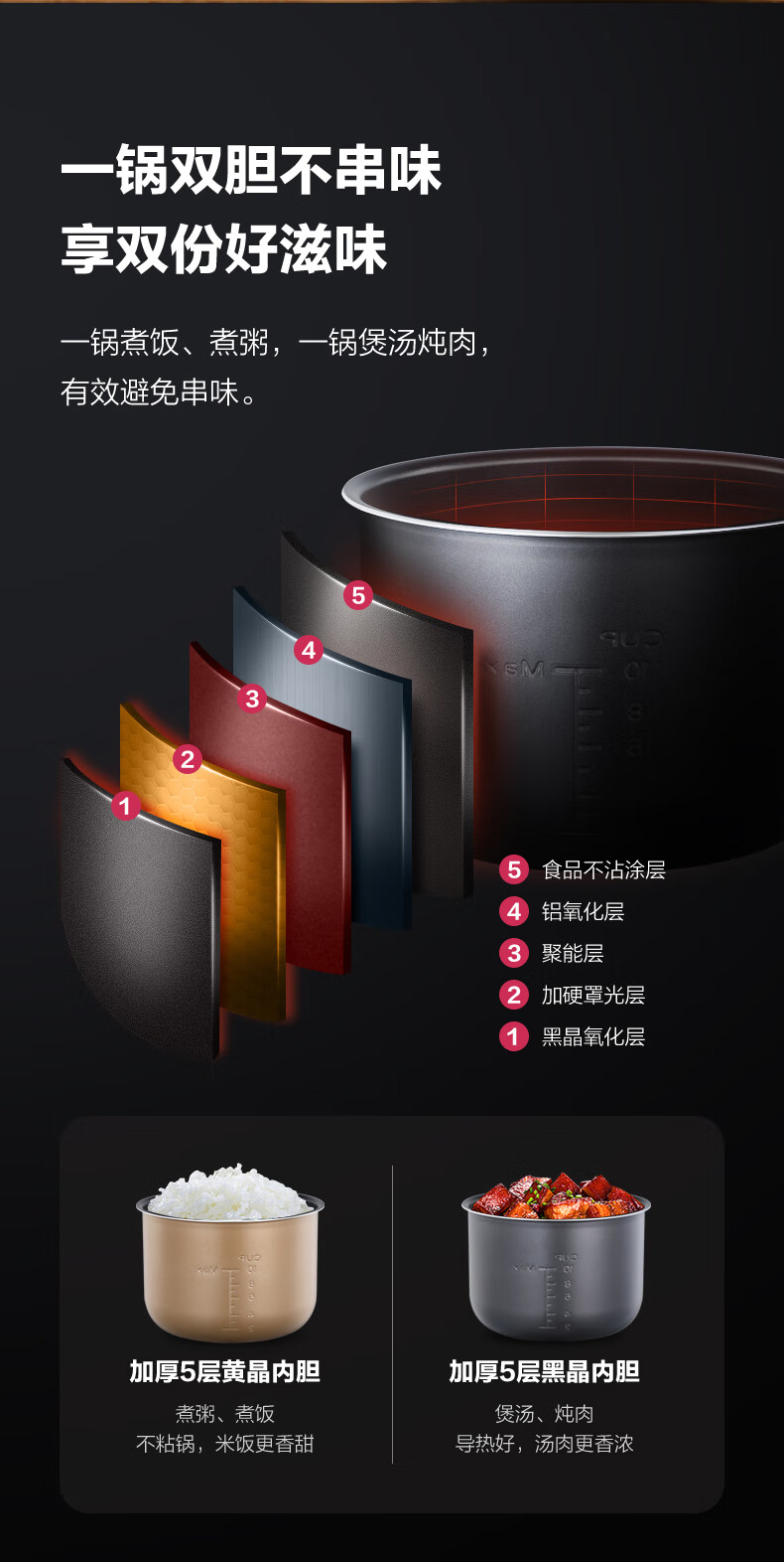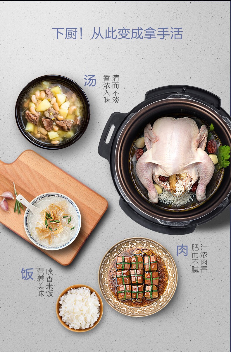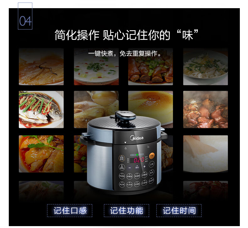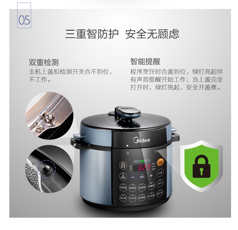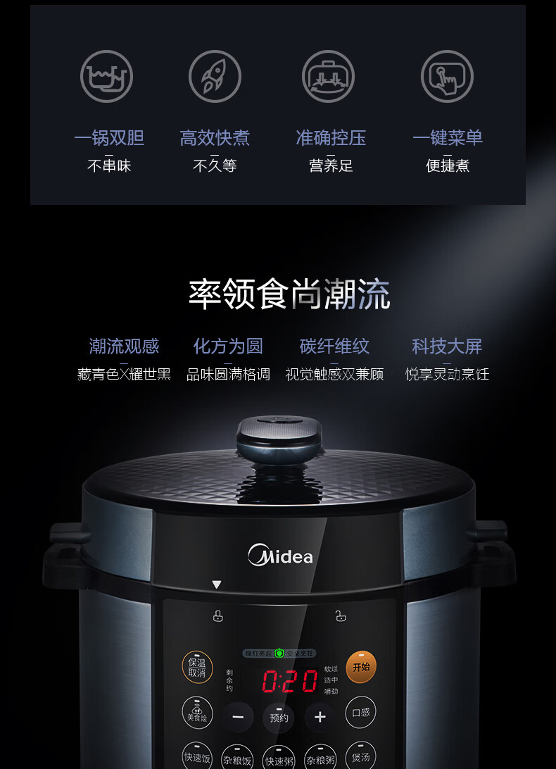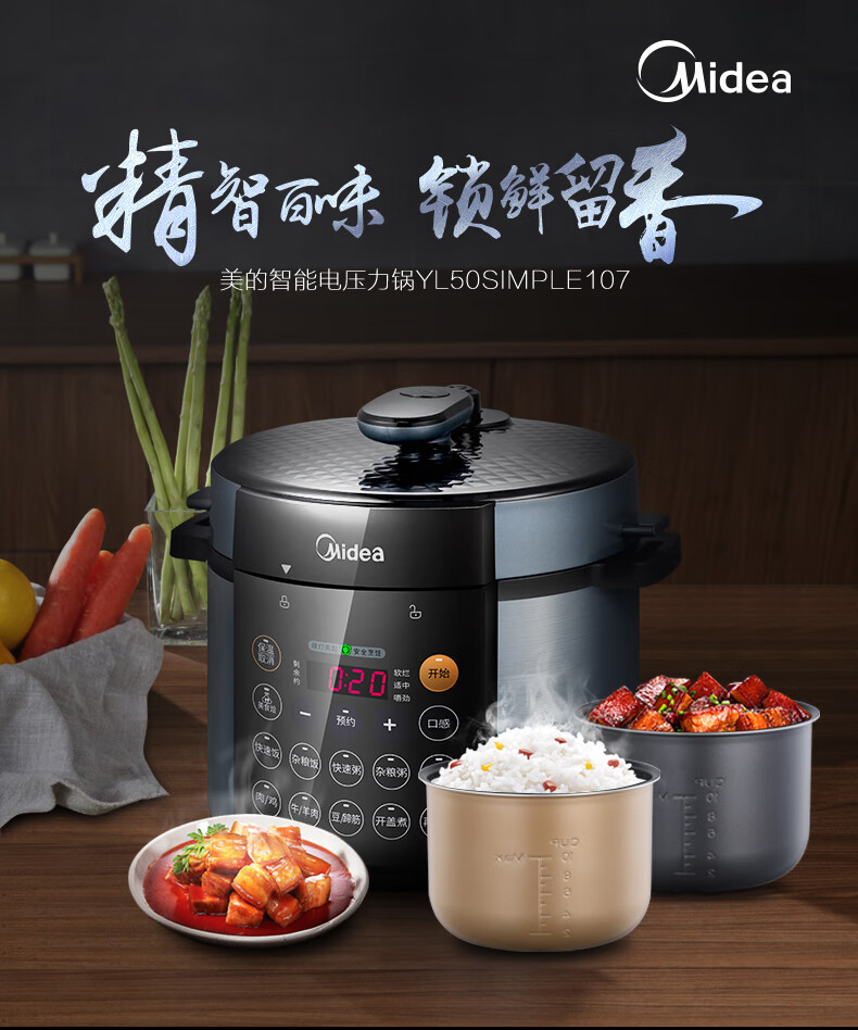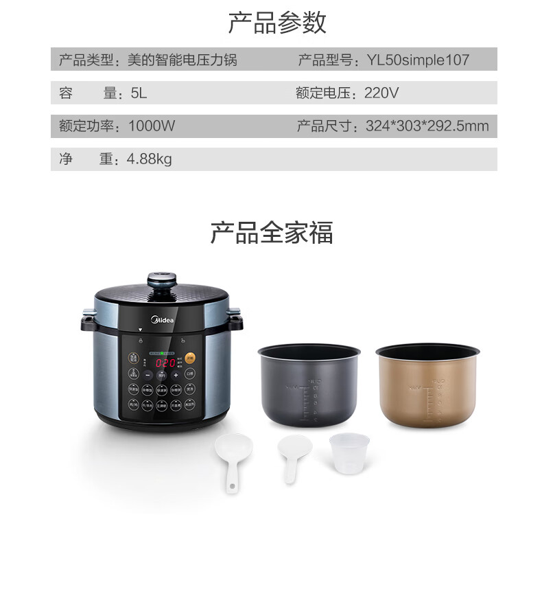 商品名称:Midea美的 双胆4.8L家用智能预约电高压饭煲 MY-YL50Simple107 电压力锅