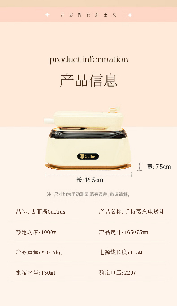 商品名称:古菲斯(GUFIUS)蒸汽电熨斗130ml GFCT-602B