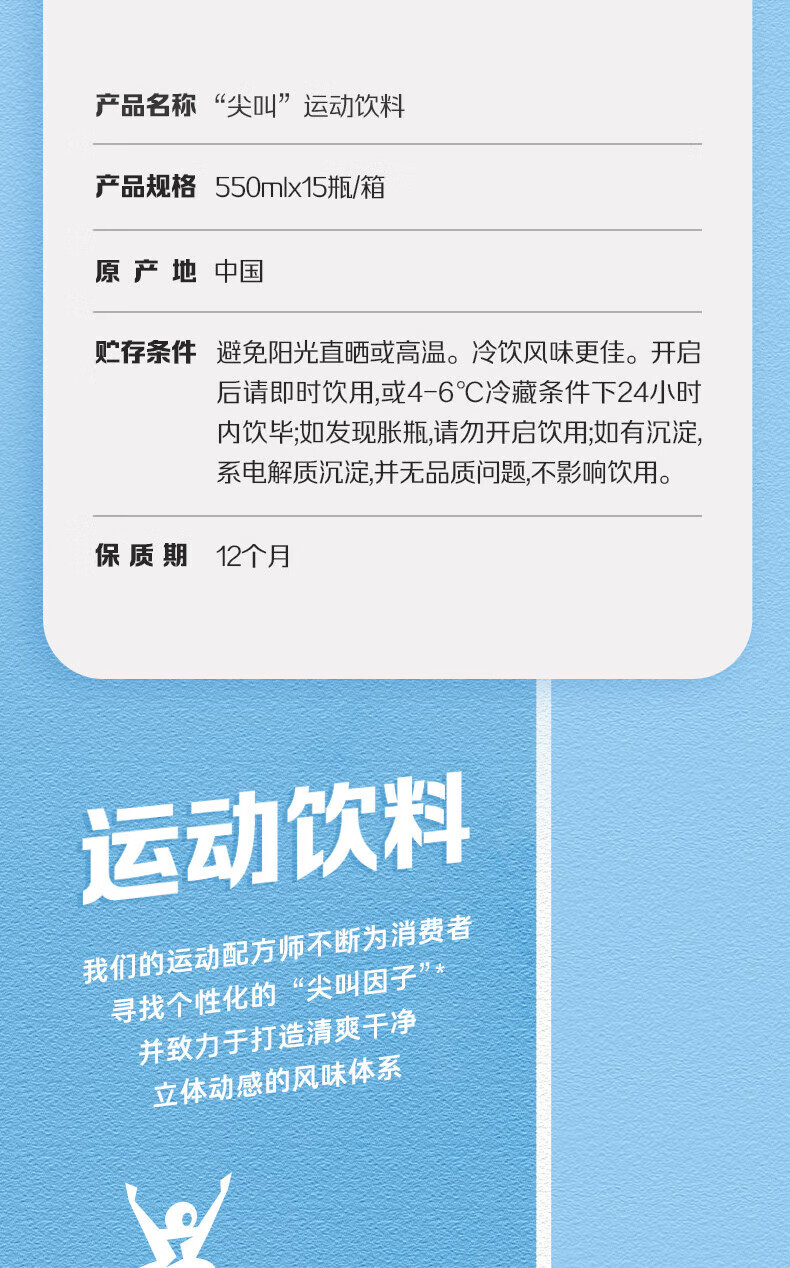 商品名称:农夫山泉尖叫电解质水功能运动饮料纤维型柠檬味550ml*15瓶