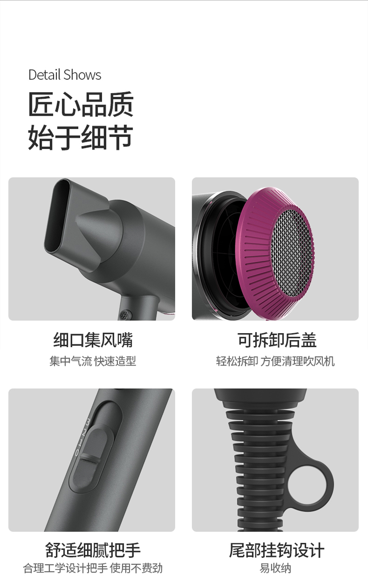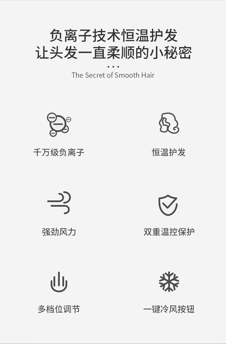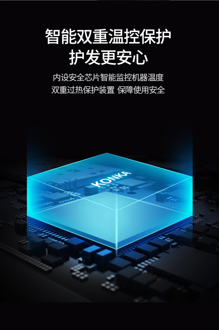 康佳(KONKA)电吹风KG-1601 负离子恒温护发大功率冷热风档位可调吹风机 快速干发小巧便携低噪