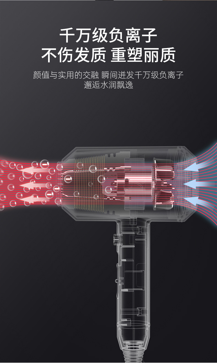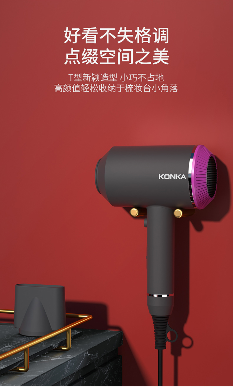 商品名称:康佳(KONKA)电吹风KG-1601 负离子恒温护发大功率冷热风档位可调吹风机 快速干发小巧便携低噪