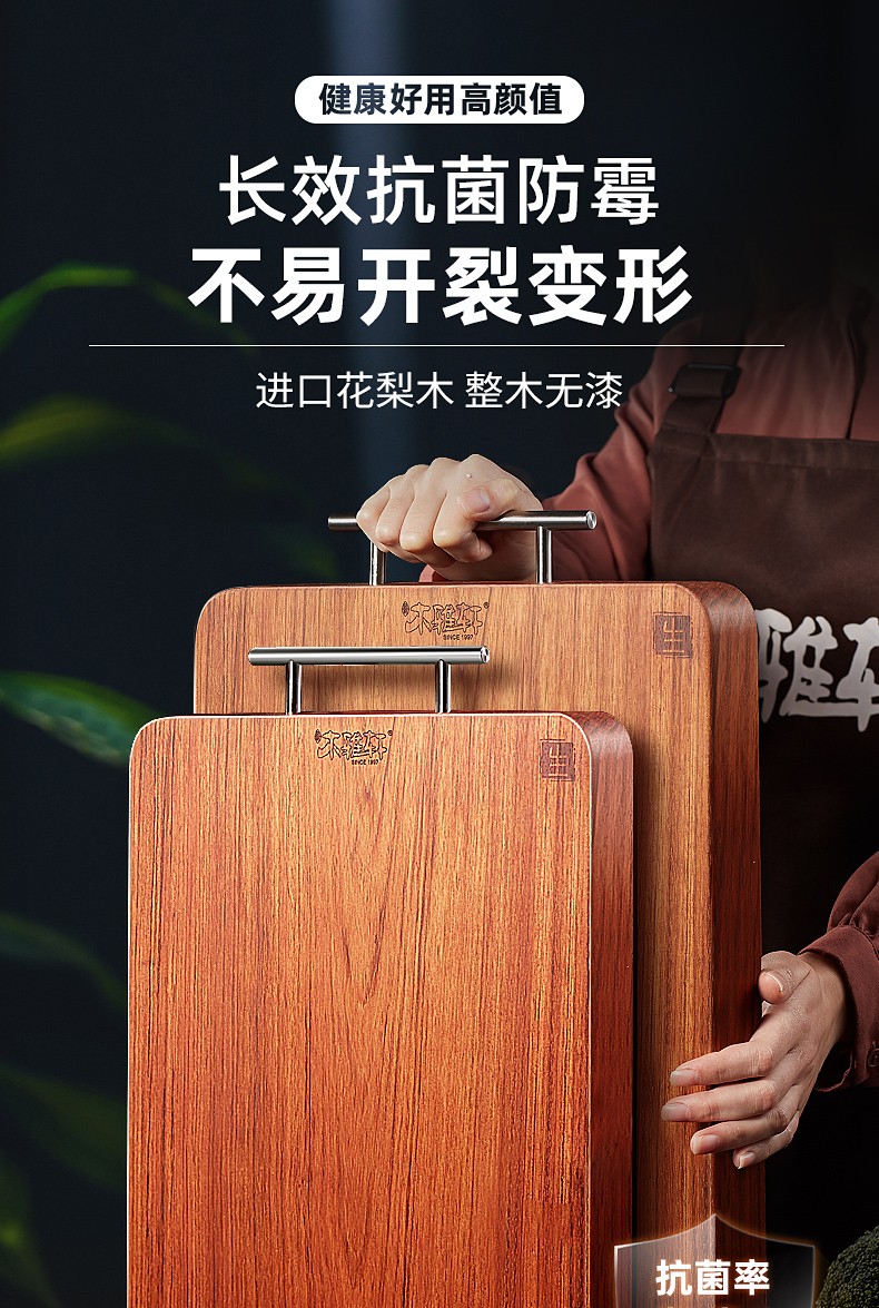 木雅轩花梨木整木菜板38*26*2.5cm(适合2-4人用)