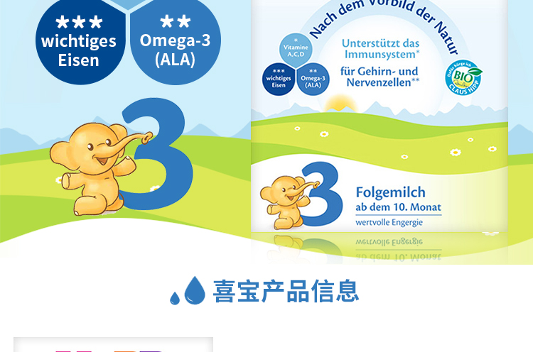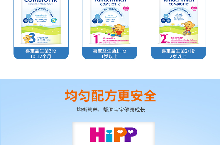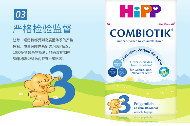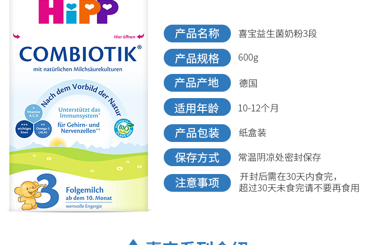 商品名称:德国HiPP BIO喜宝益生菌奶粉3段(10-12个月宝宝)600g【1盒起发】